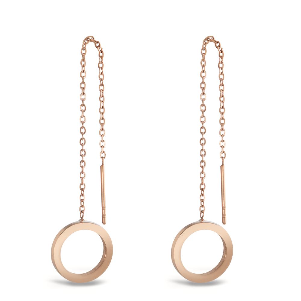 Elegante Damen Durchziehohrhänger aus hochwertigem Edelstahl in edlem Roségold. Das moderne Design mit offenem Kreiselement und feiner Kette verleiht jedem Outfit einen stylischen Akzent. Leicht, langlebig und hautfreundlich – das perfekte Schmuckstück für jeden Anlass.