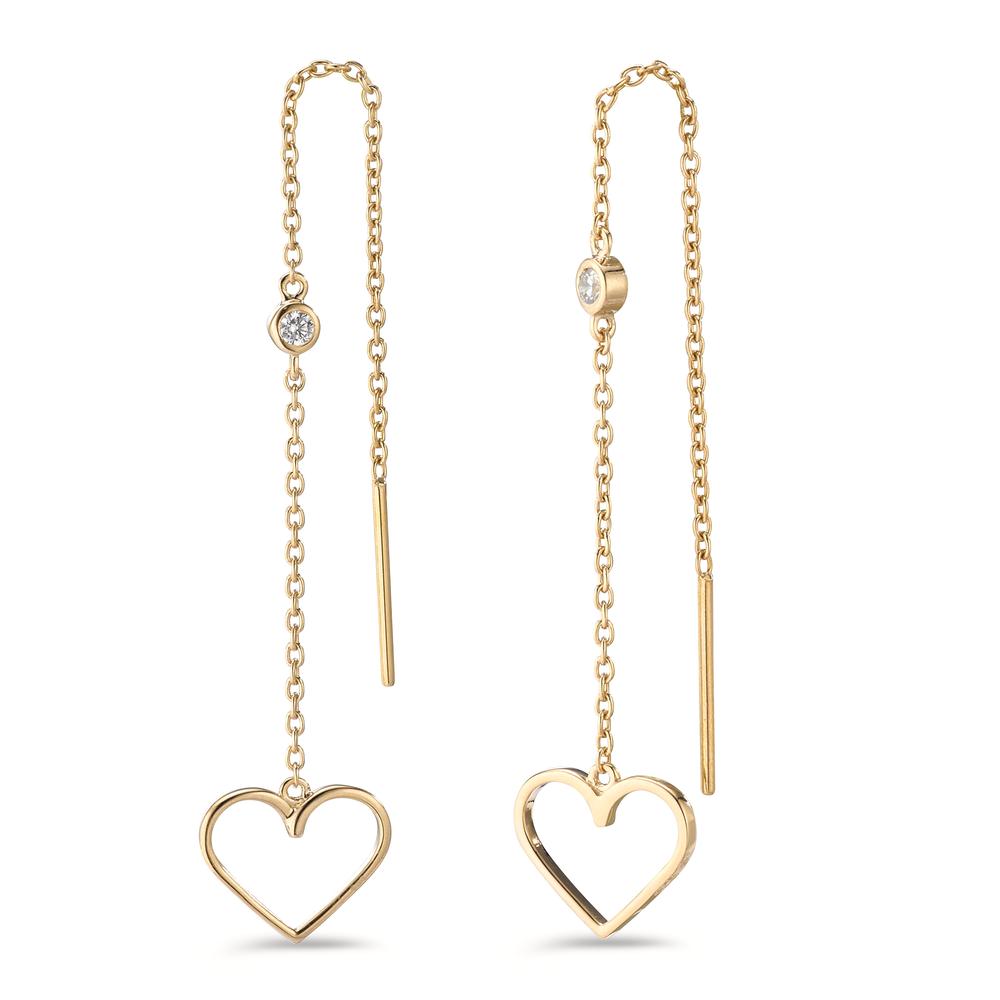 Durchziehohrhänger Silber Zirkonia 2 Steine gelb vergoldet Herz