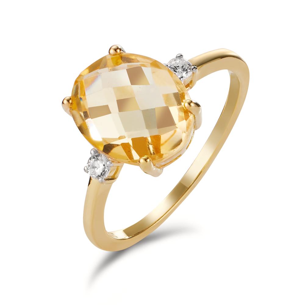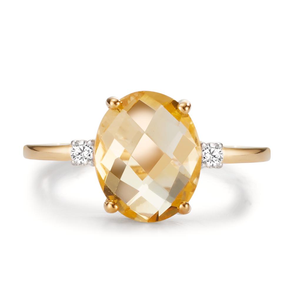 Fingerring 375/9 K Gelbgold Citrin, Zirkonia 2 Steine