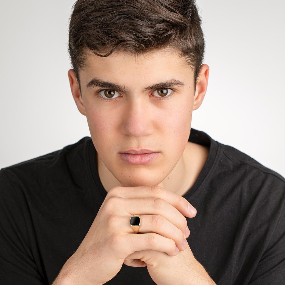 Eleganter Herrenring aus 375er Gelbgold mit edlem Onyx-Stein. Das schlichte, zeitlose Design verleiht jedem Look eine maskuline Note. Perfekt für besondere Anlässe oder den täglichen Stil. Hochwertige Verarbeitung garantiert lange Freude an diesem Schmuckstück.