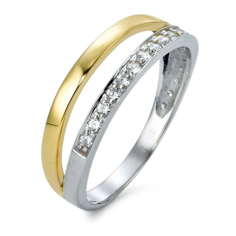 Fingerring 375/9 K Weissgold, 375/9 K Gelbgold Zirkonia 19 Steine