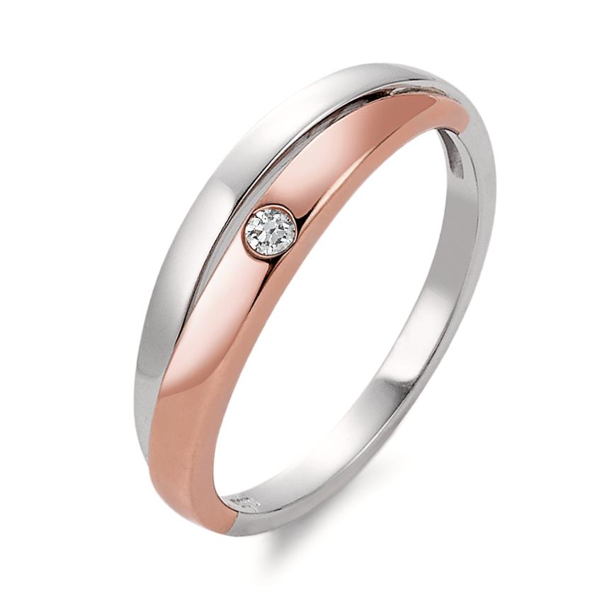 Fingerring 375/9 K Weissgold, 375/9 K Rotgold Diamant 0.03 ct, tw-si