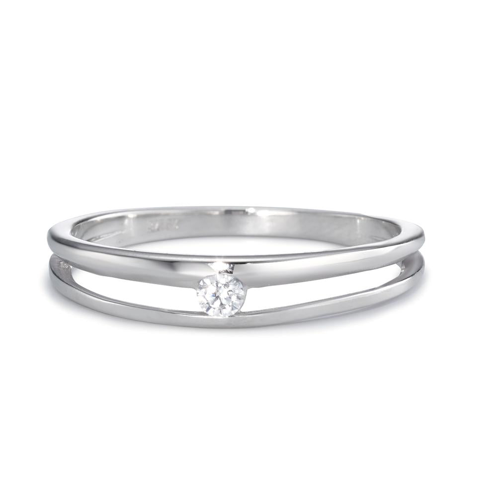 Eleganter Damenring aus 375 Weissgold, der durch sein modernes Design mit feiner Doppelband-Optik besticht. Der mittig gefasste Zirkonia verleiht dem Schmuckstück funkelnden Glanz. Perfekt für zeitlose Eleganz im Alltag oder besondere Anlässe.