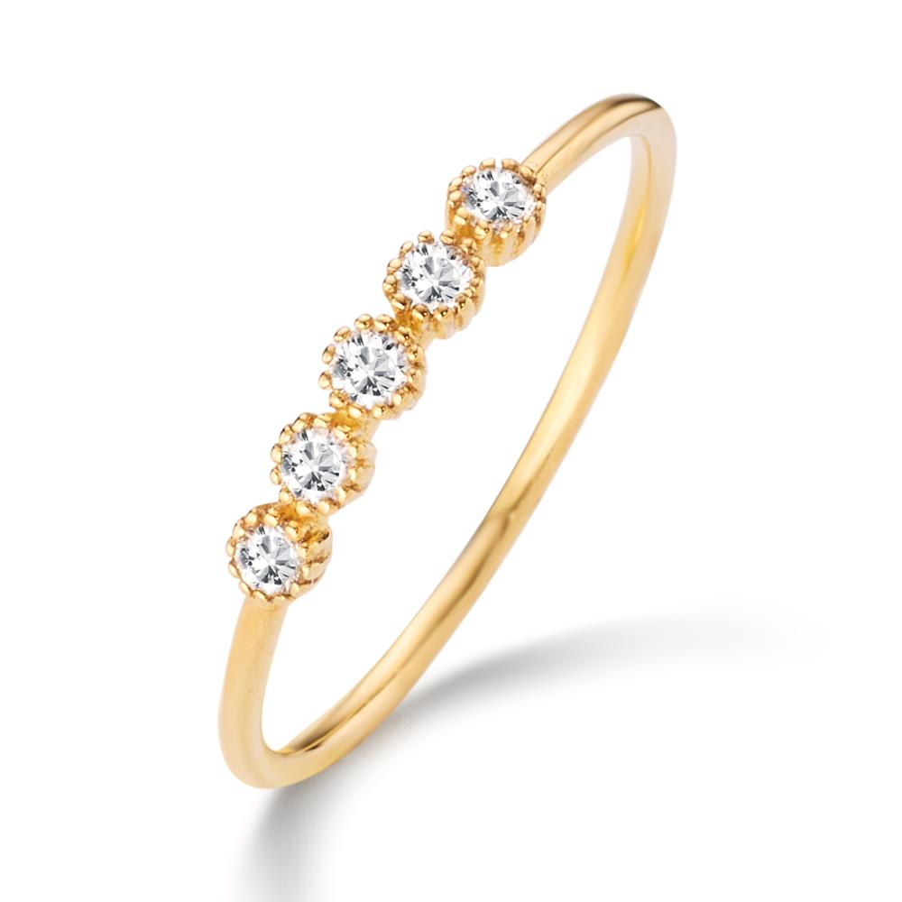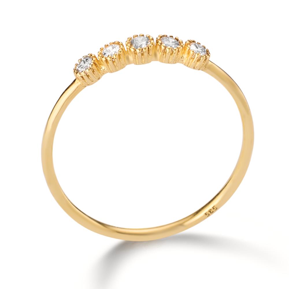 Fingerring 585/14 K Gelbgold Diamant 0.125 ct, 5 Steine, w-si