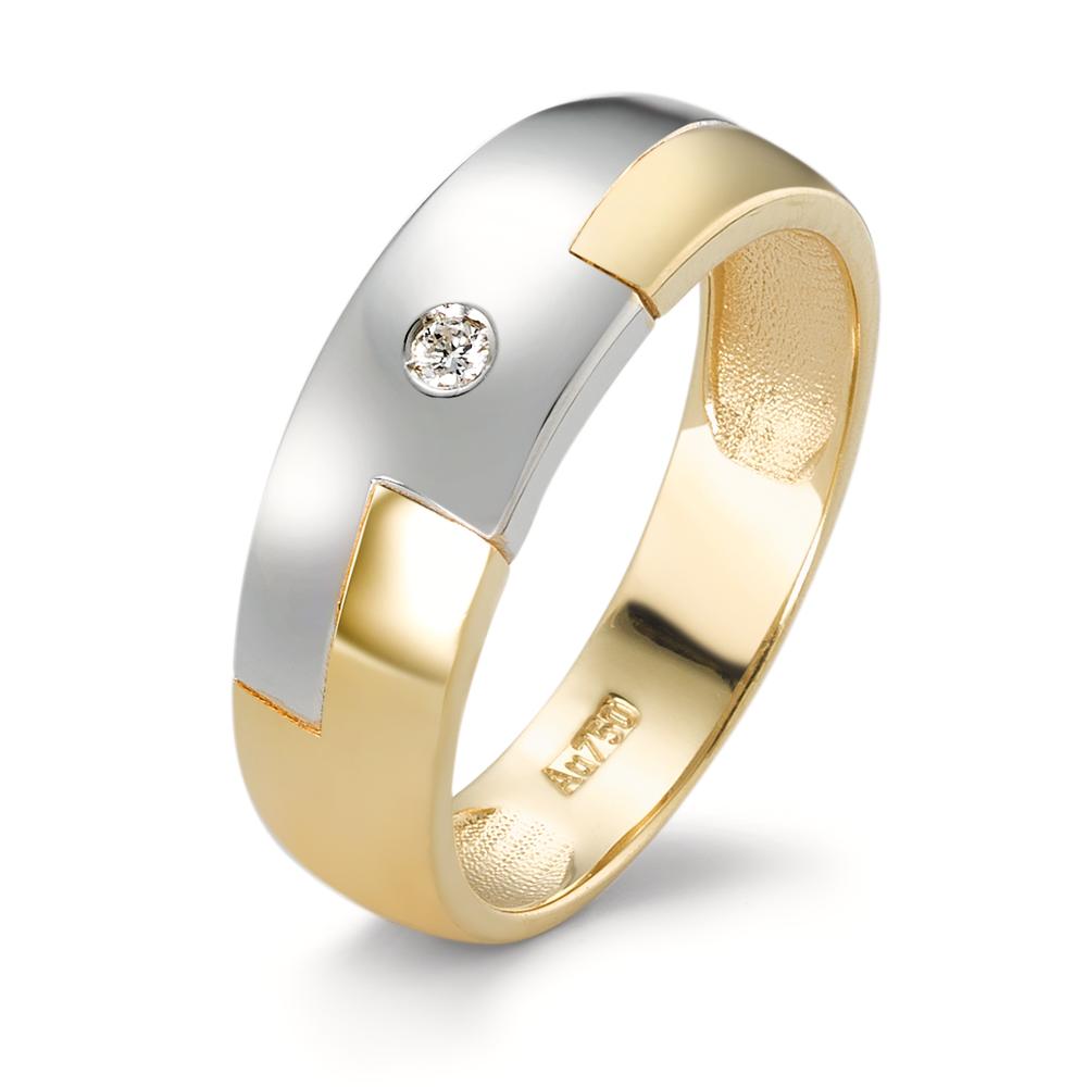 Fingerring 750/18 K Gelbgold, 750/18 K Weissgold Diamant 0.02 ct, w-si