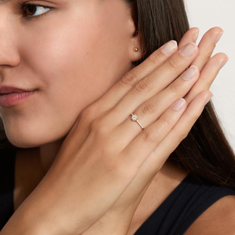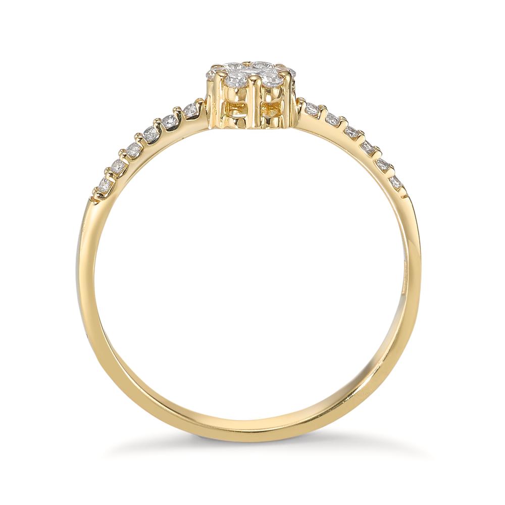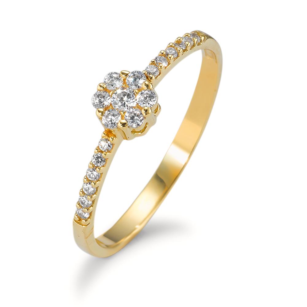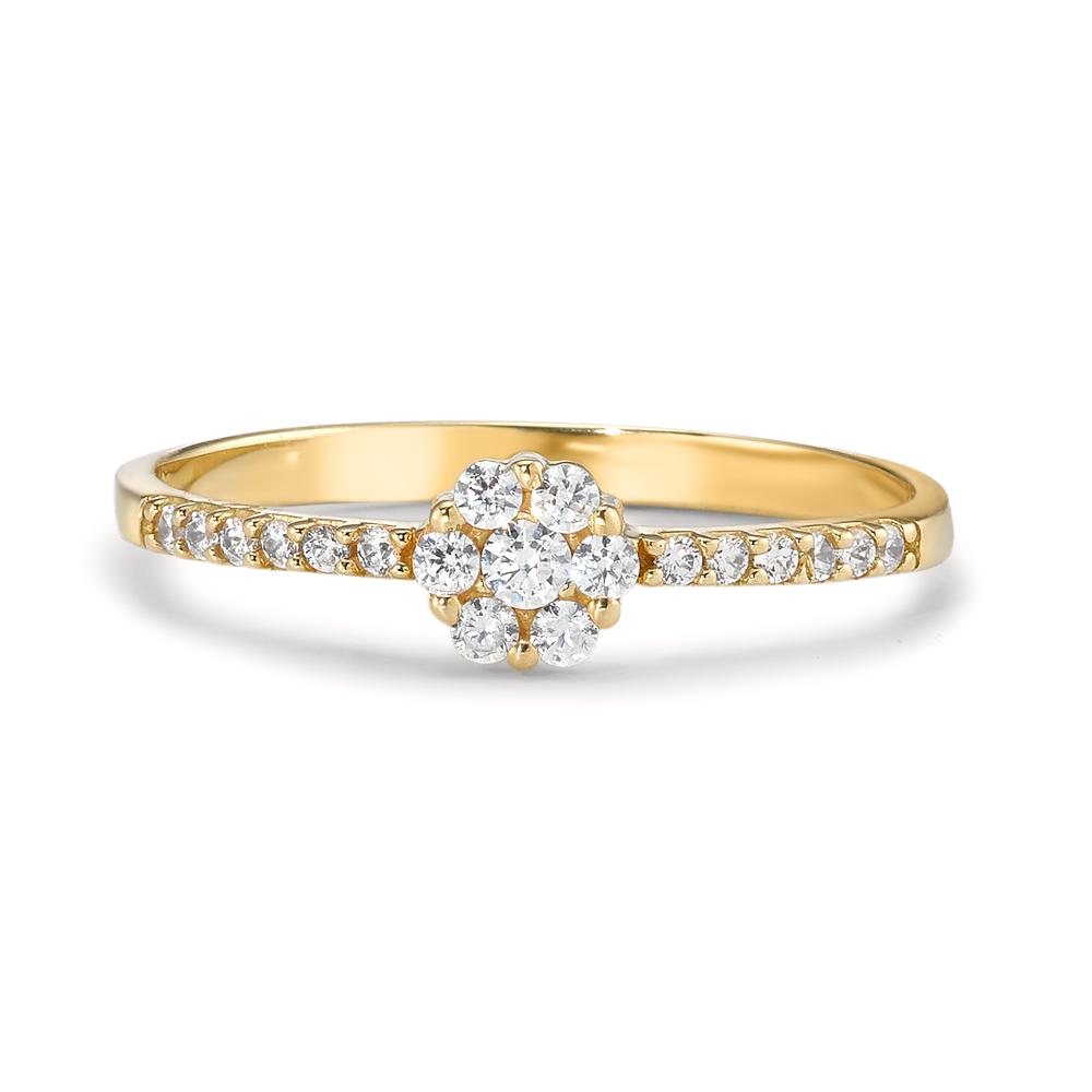 Eleganter Damen Fingerring aus 750er Gelbgold, verziert mit funkelnden Zirkonia-Steinen. Das feine Design mit zentralem Steinbesatz und seitlichen Steinreihen sorgt für zeitlose Schönheit und brillante Akzente. Perfekt für jeden Anlass und stilbewusste Frauen.