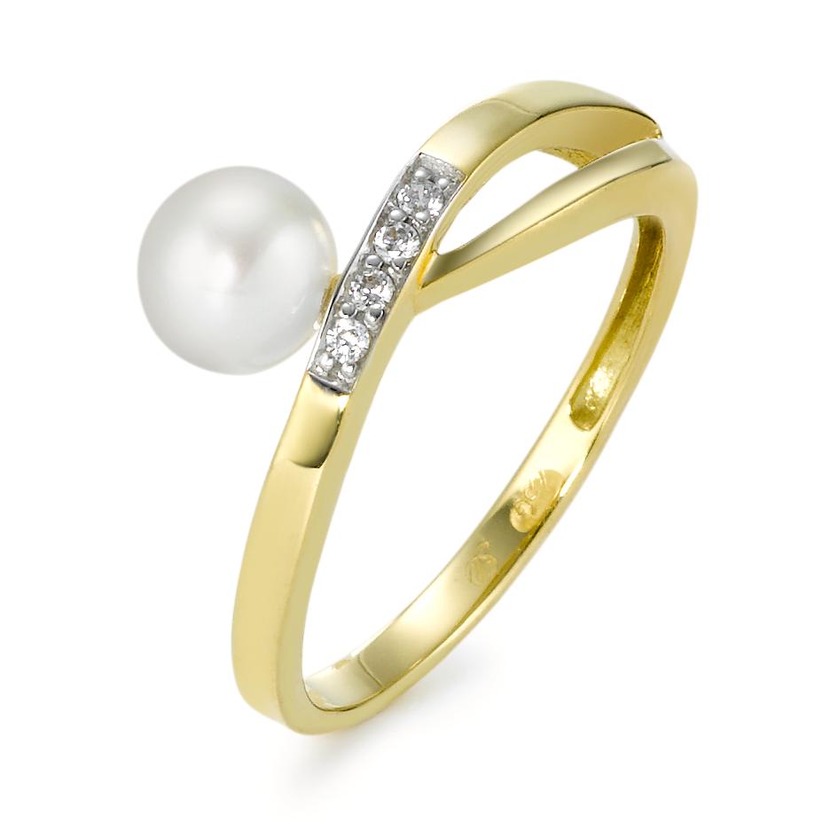 Fingerring 750/18 K Gelbgold Zirkonia Süsswasserzuchtperle weiss