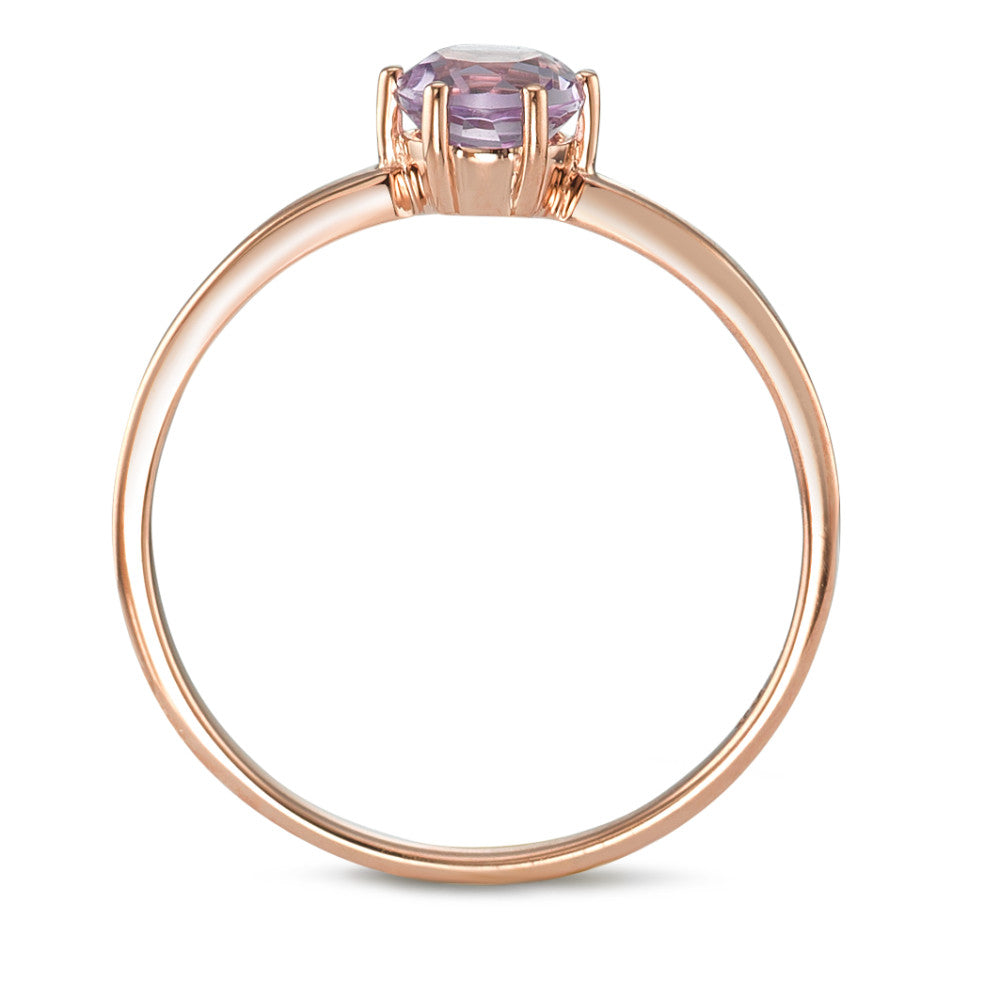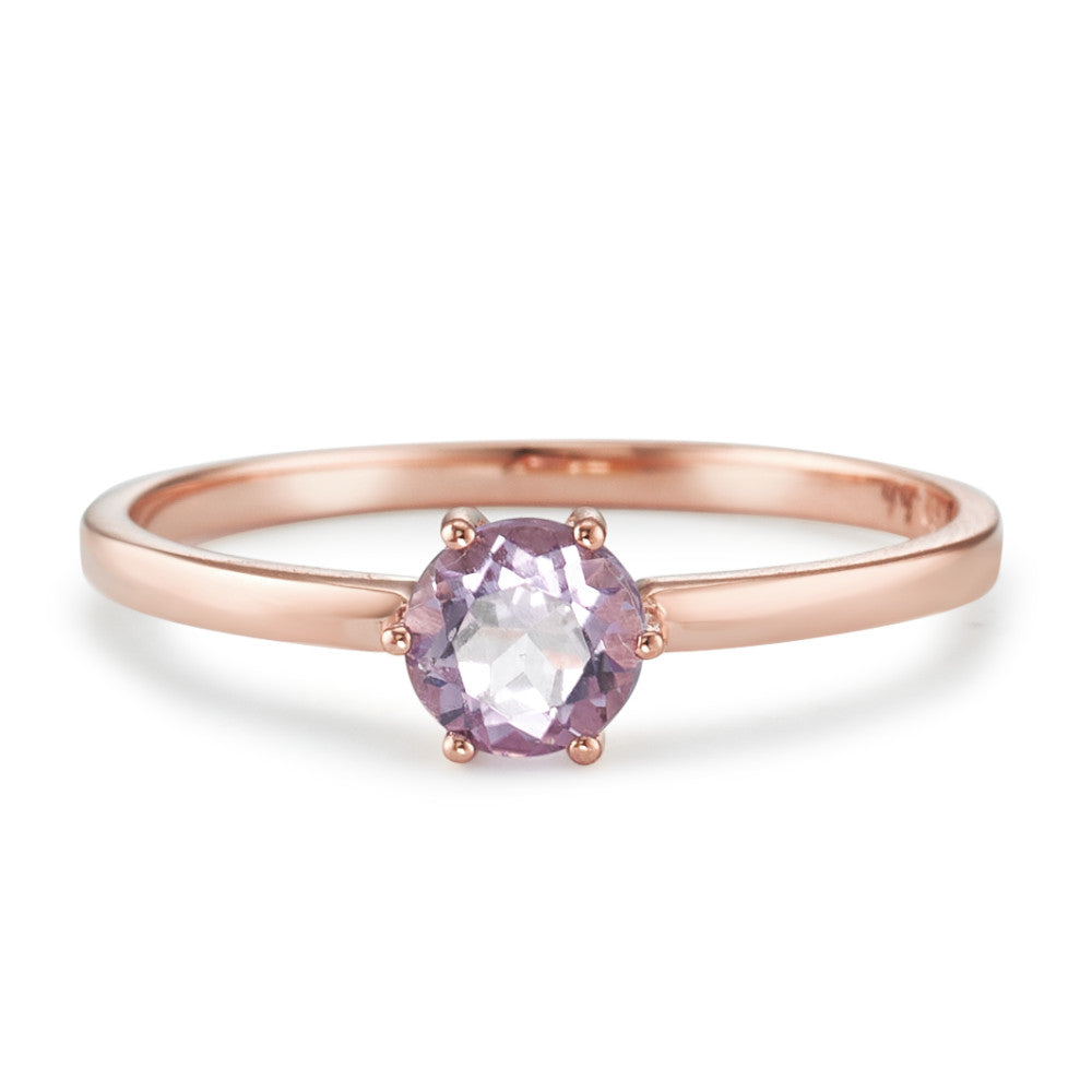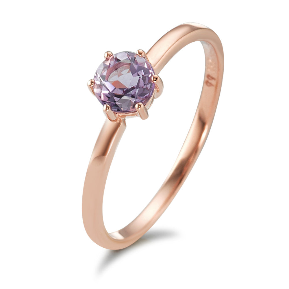 Eleganter Damenring aus 750 Rotgold mit einem strahlenden, runden Amethysten. Das filigrane Design und die hochwertige Verarbeitung machen diesen Fingerring zum perfekten Accessoire für jeden Tag oder besondere Anlässe. Ein zeitloser Schmuckklassiker für stilbewusste Frauen.
