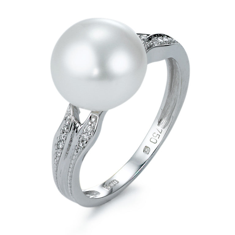 Fingerring 750/18 K Weissgold Diamant 0.045 ct, 14 Steine, Brillantschliff, w-si Süsswasserzuchtperlen 9.5-10 mm