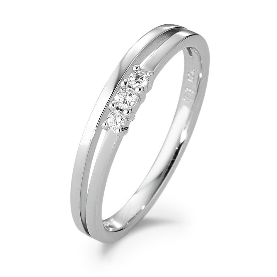 Fingerring 750/18 K Weissgold Diamant weiss, 0.07 ct, 3 Steine, Brillantschliff, w-si