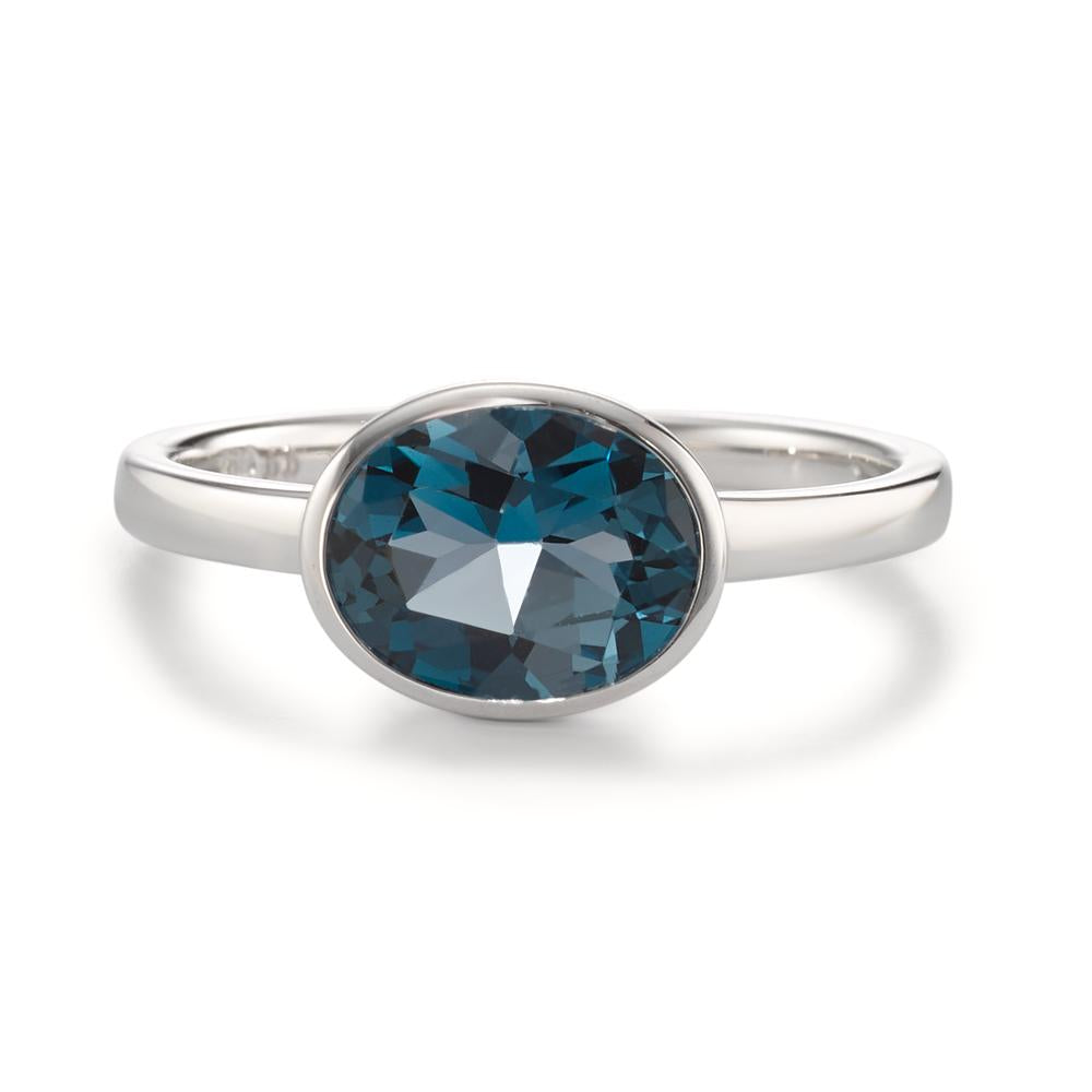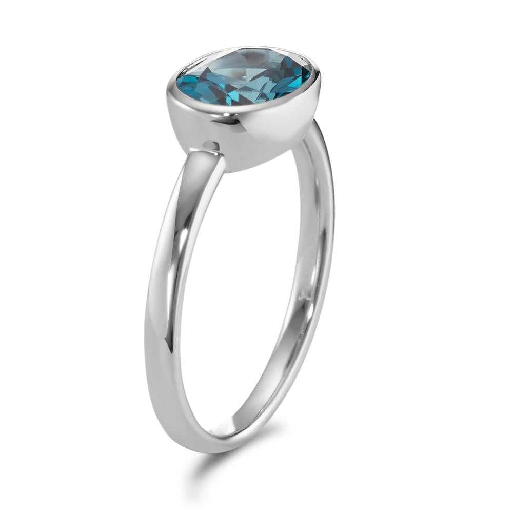 Eleganter Damenring aus 750er Weissgold, verziert mit einem ovalen London Blue Topas. Der tiefblaue Edelstein bringt zeitlose Eleganz und Stil in Ihr Outfit. Perfekt für besondere Anlässe oder den Alltag – ein edles Schmuckstück für anspruchsvolle Damen.