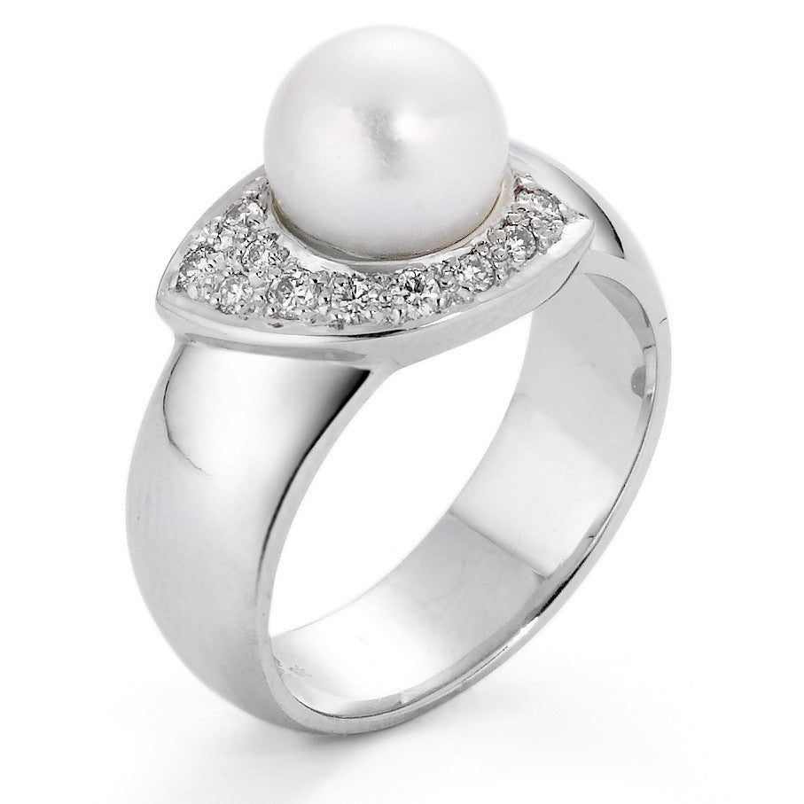 Fingerring 750/18 K Weissgold Süsswasserzuchtperle 10 Dia., 0.15ct w-si