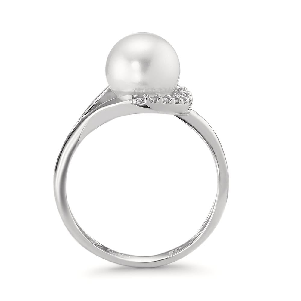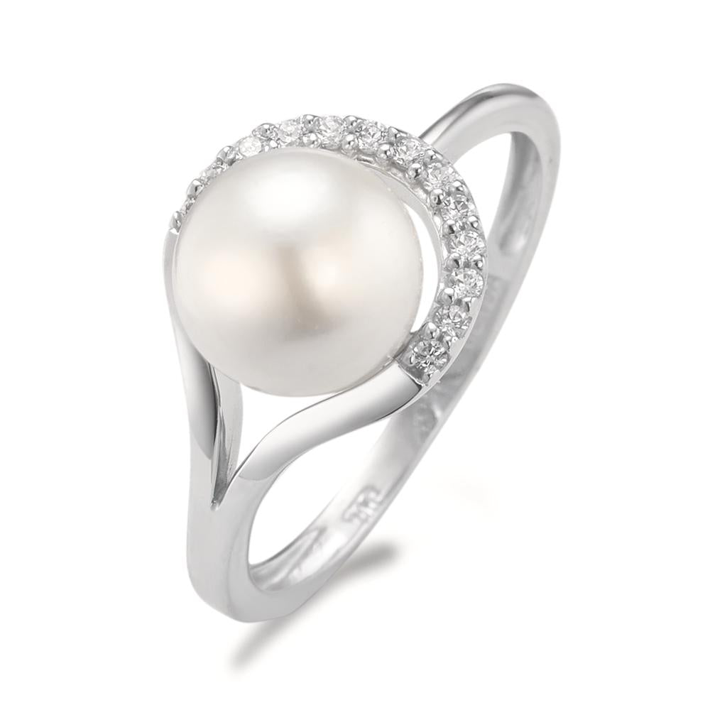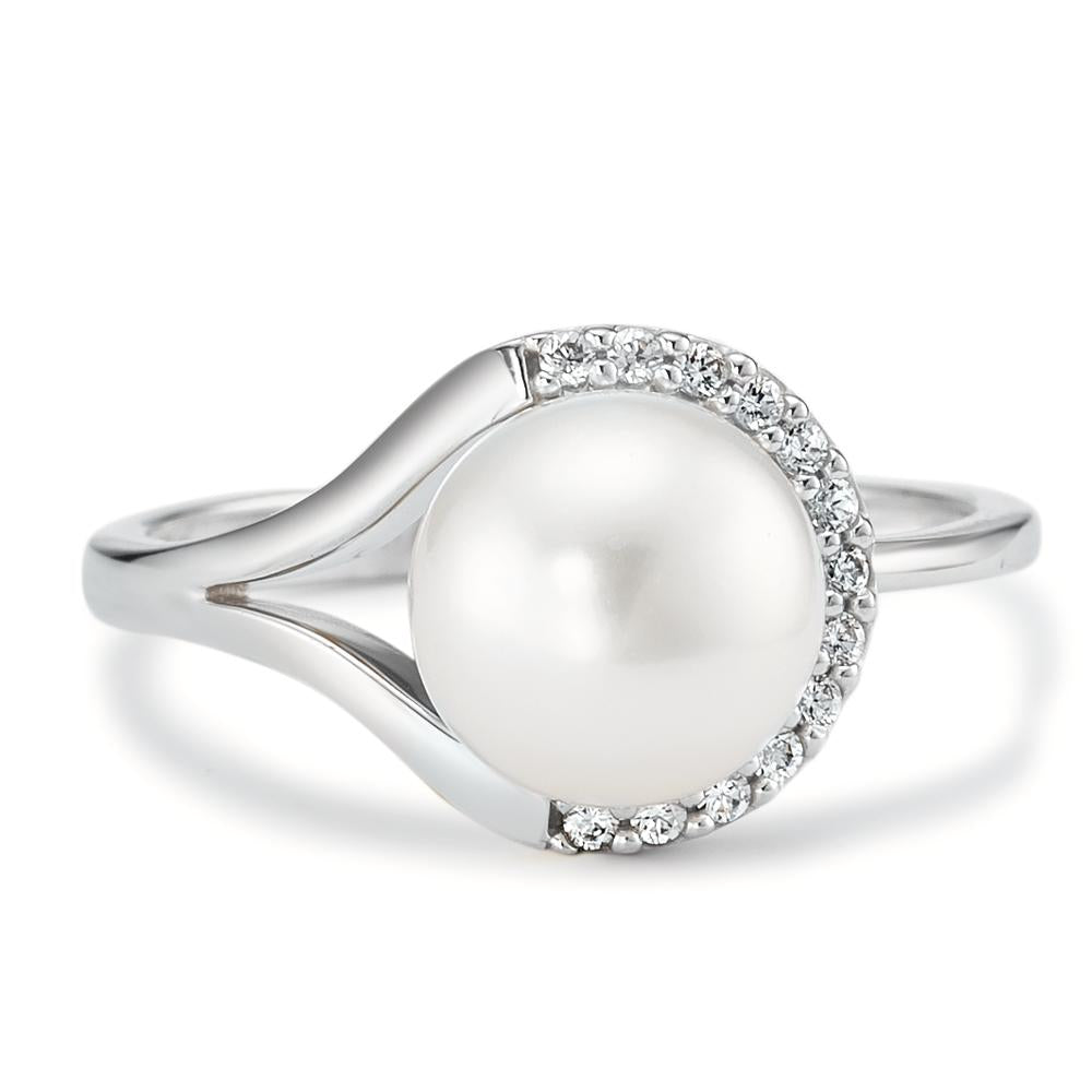 Fingerring 750/18 K Weissgold Zirkonia 13 Steine Süsswasserzuchtperle weiss, 7.5 mm
