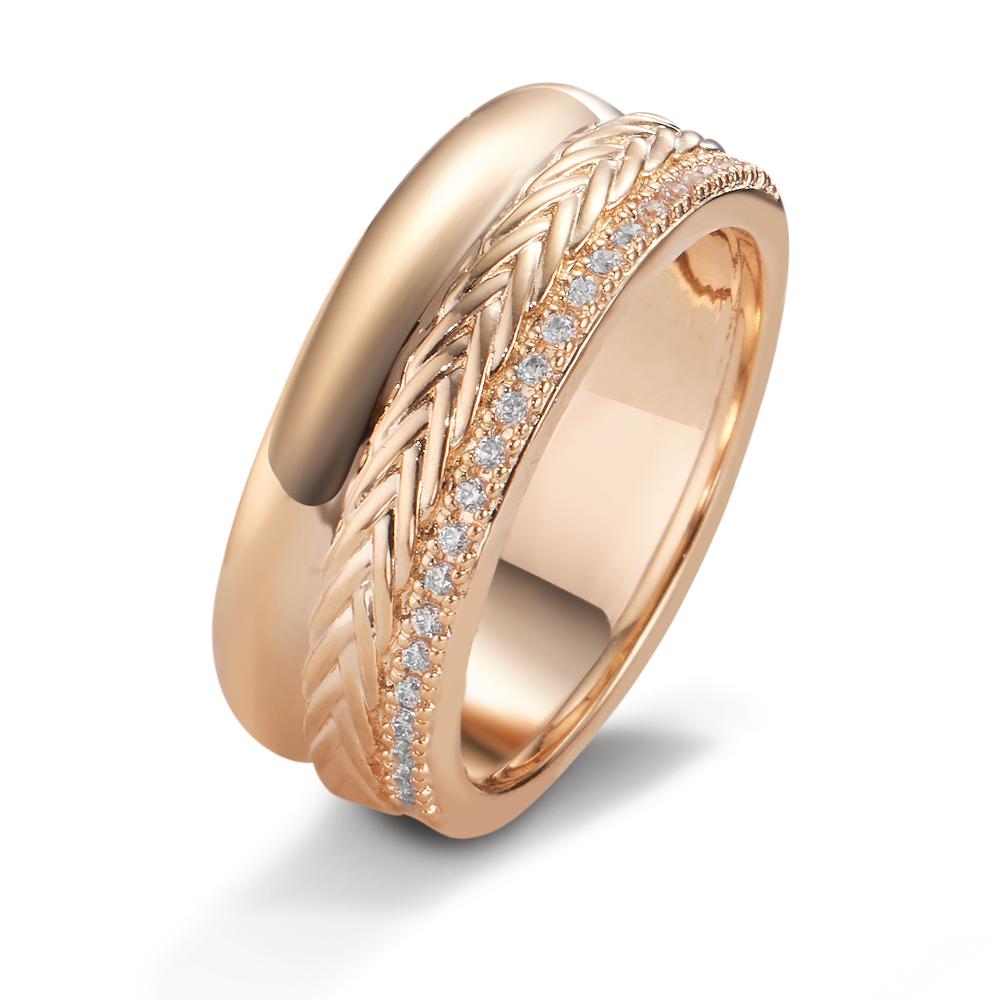 Eleganter Damen Fingerring aus hochwertiger Bronze mit funkelnden Zirkonia-Steinen. Das einzigartige Design kombiniert mattierte und geflochtene Elemente, die dem Schmuckstück eine besondere Note verleihen. Perfekt für stilbewusste Frauen, die zeitlose Eleganz lieben.