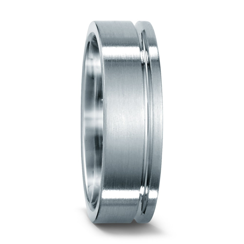 Moderner Fingerring aus hochwertigem Edelstahl mit matter Oberfläche und feiner, polierter Linie als dezentes Highlight. Der langlebige und hautfreundliche Ring überzeugt durch zeitloses Design und idealen Tragekomfort – perfekt für jeden Anlass und Alltag.