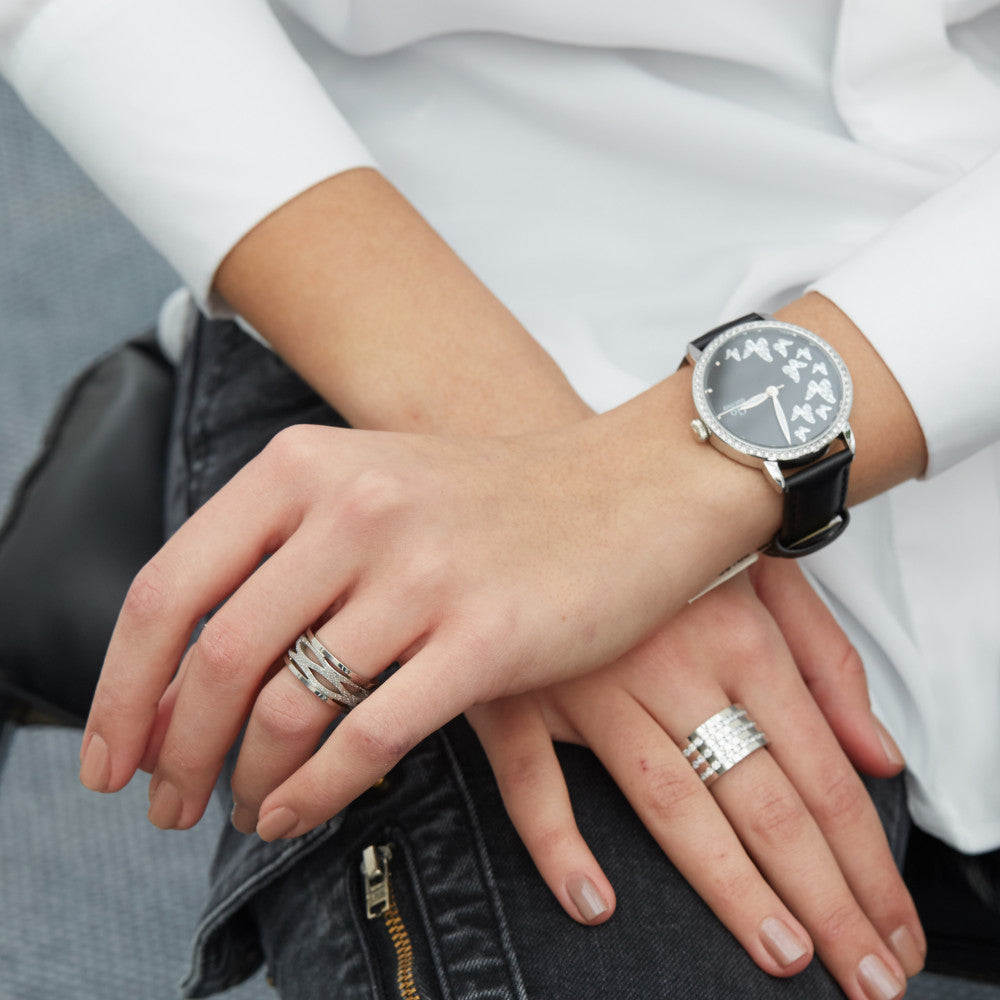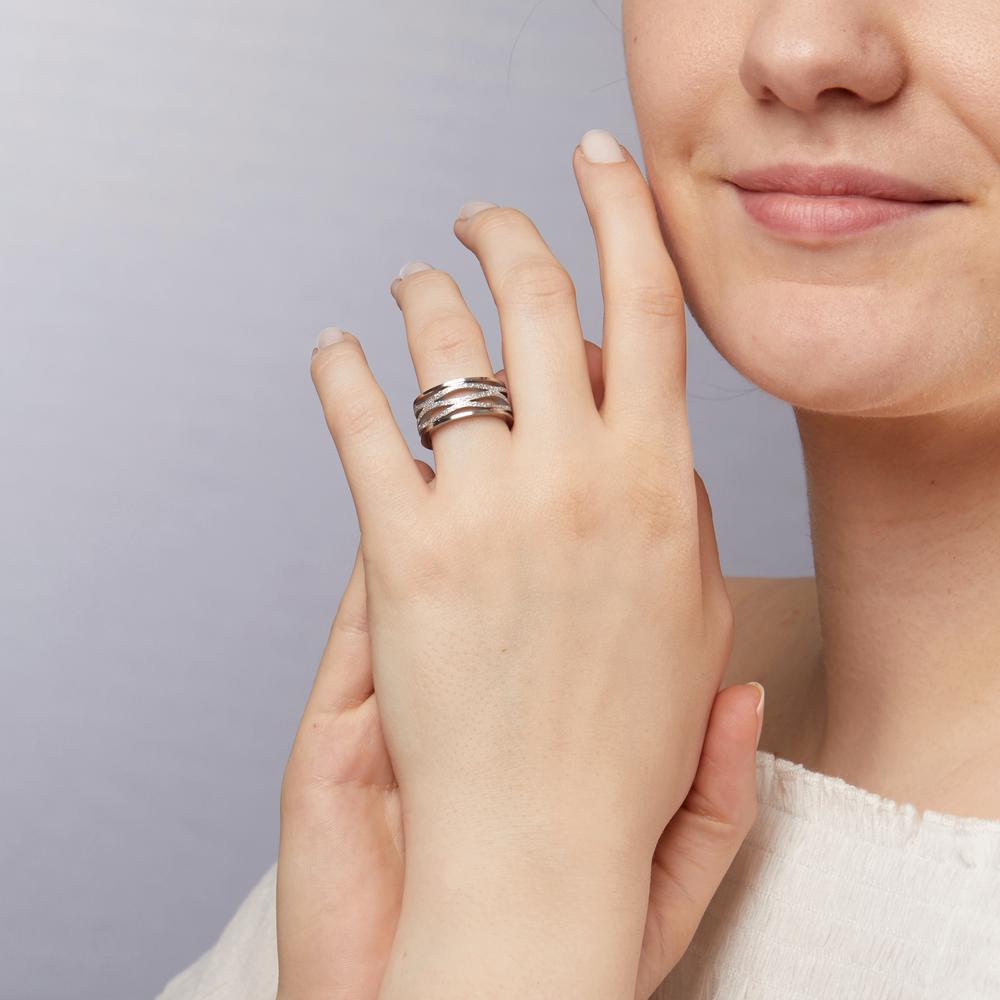 Moderner Damen Fingerring aus hochwertigem Edelstahl mit ausgefallenem, offenem Design und strukturierter Oberfläche. Das elegante Muster verleiht dem Ring einen einzigartigen Look und macht ihn zum perfekten Accessoire für jeden Anlass. Hautfreundlich und langlebig.