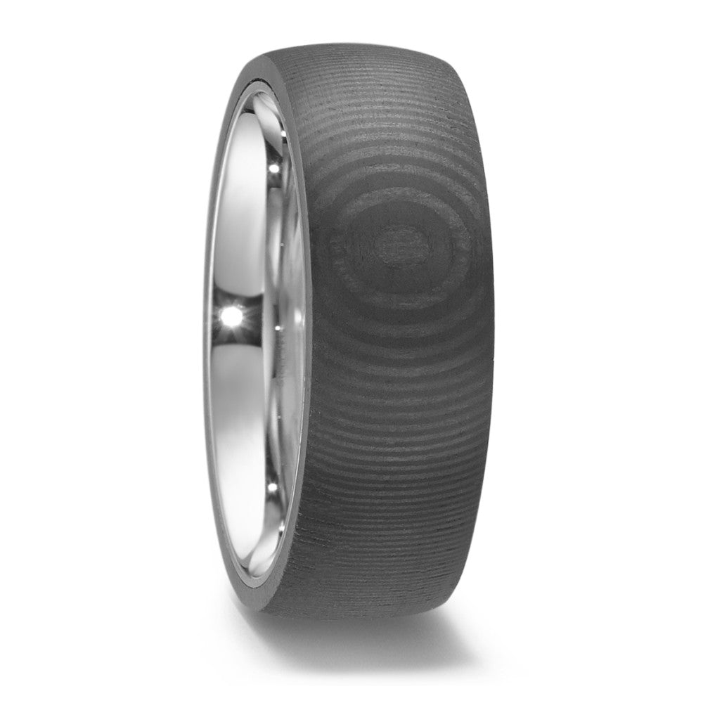 Moderner Fingerring aus hochwertigem Edelstahl mit auffälliger, dunkler Oberfläche und dezentem, ringförmigem Muster. Der Ring verbindet minimalistisches Design mit langlebiger Qualität – ein stilvolles Accessoire, das zu jedem Anlass passt und sowohl für Damen als auch Herren geeignet ist.