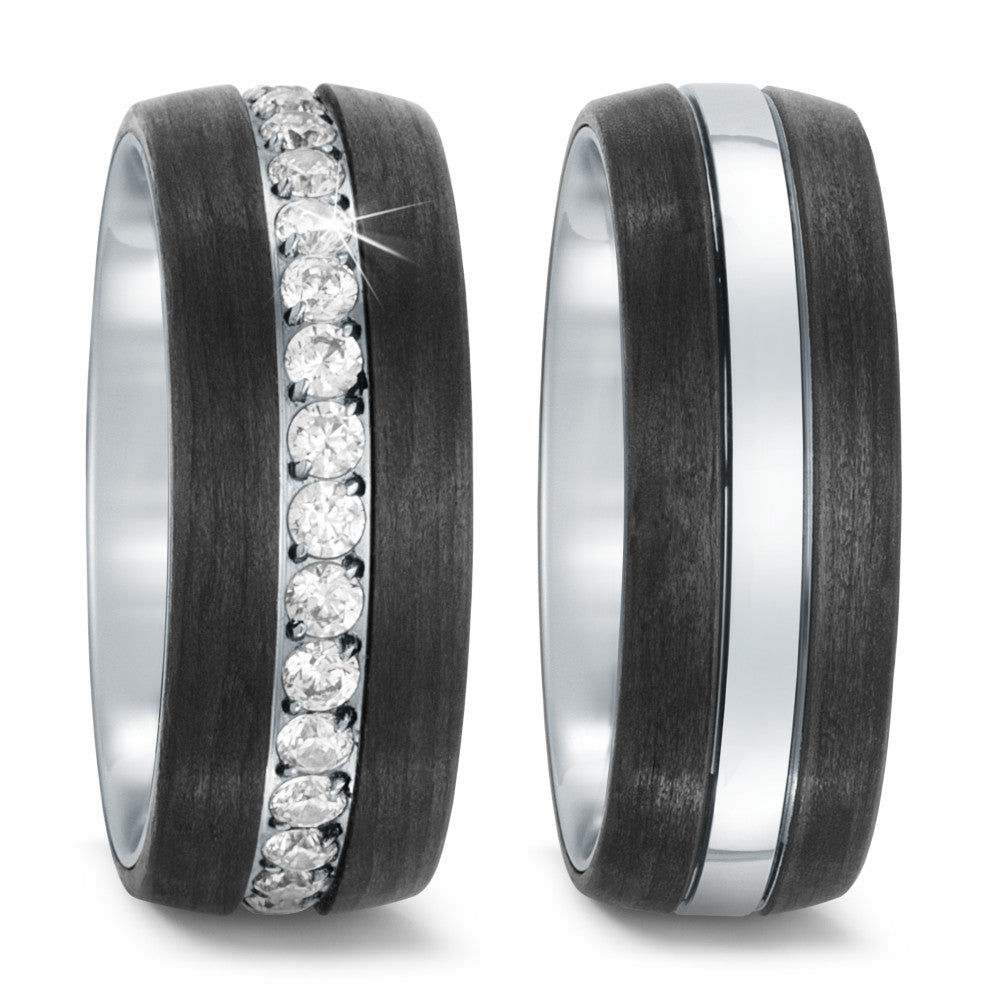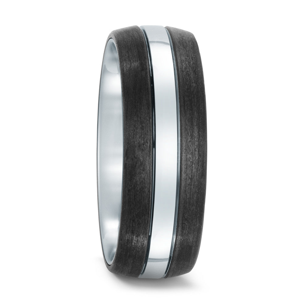 Moderner Fingerring aus hochwertigem Edelstahl mit edler Carbon-Einlage. Die Kombination aus silbernem Metall und mattschwarzem Carbon verleiht dem Ring einen eleganten und maskulinen Look. Perfekt für alle, die zeitlose Qualität und Stil schätzen.