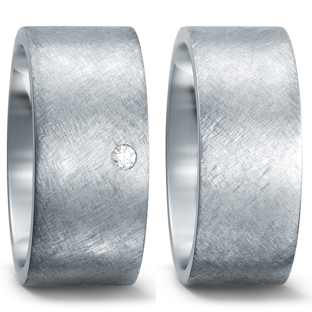 Moderner Damenring aus langlebigem Edelstahl mit matter Oberfläche und integriertem funkelnden Diamanten. Das schlichte, breite Design vereint Eleganz und Alltagstauglichkeit und macht diesen Ring zum dezenten Highlight für jeden Anlass. Perfektes Schmuckstück für stilbewusste Frauen.