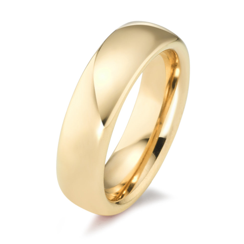 Eleganter Fingerring aus hochwertigem Edelstahl mit polierter, goldfarbener Oberfläche. Das schlichte, zeitlose Design macht diesen Ring zum perfekten Accessoire für jeden Anlass. Robust, hautfreundlich und langlebig – ein edler Blickfang für Damen und Herren.