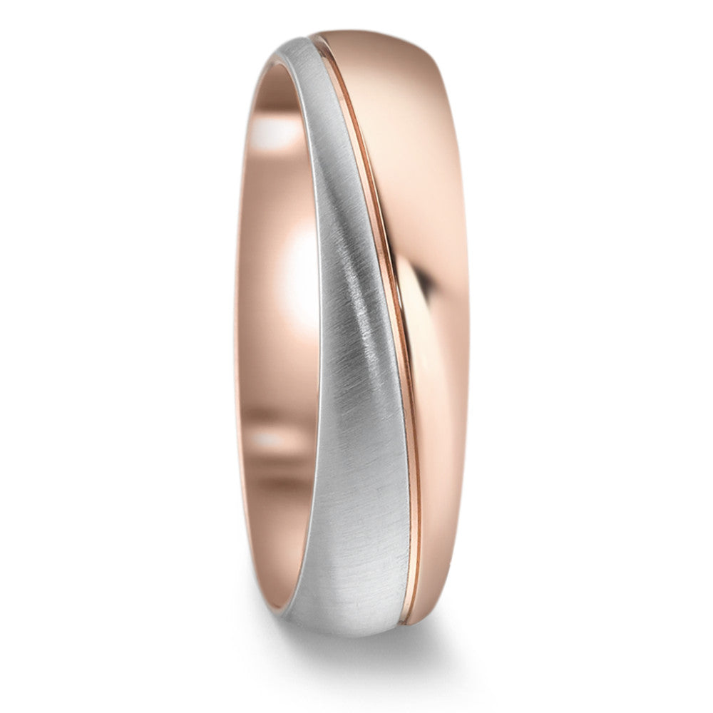 Moderner Fingerring aus hochwertigem Edelstahl in zwei Farben. Die Kombination aus mattem Silber und glänzendem Roségold verleiht dem Ring ein einzigartiges, elegantes Design. Perfekt für jeden Anlass und langlebig im Alltag. Ein stilvolles Accessoire für Sie und Ihn.