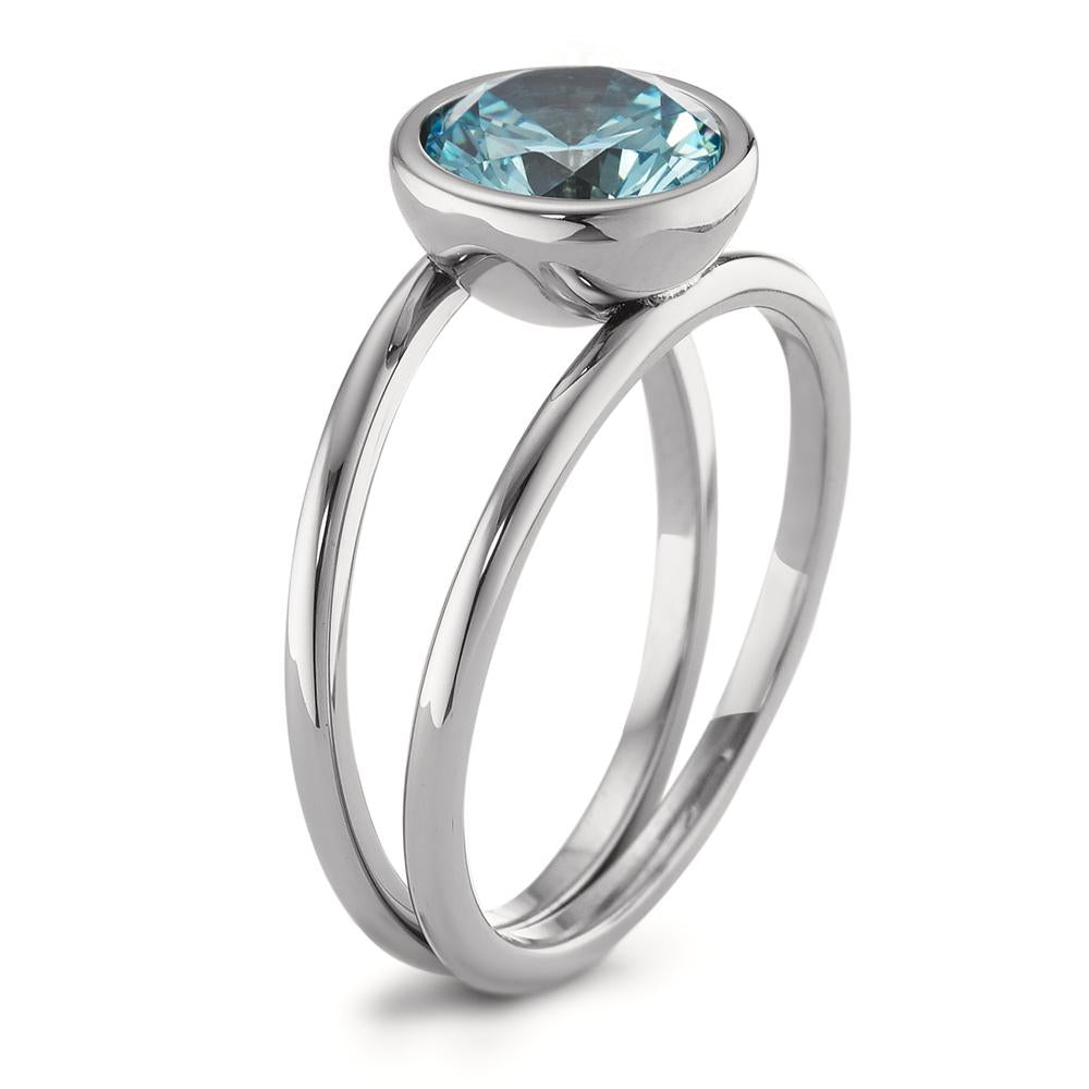 Fingerring Edelstahl Zirkonia aqua Ø9.5 mm
