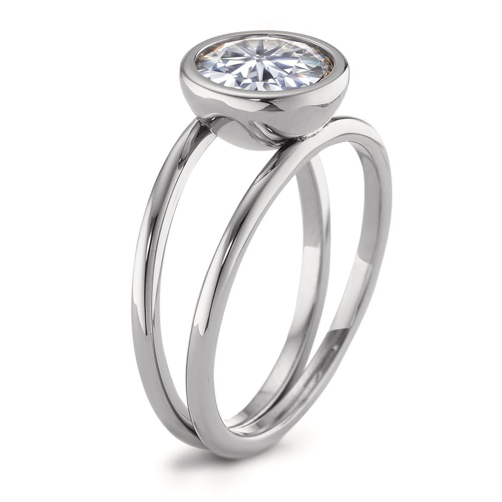 Fingerring Edelstahl Zirkonia weiss Ø9.5 mm