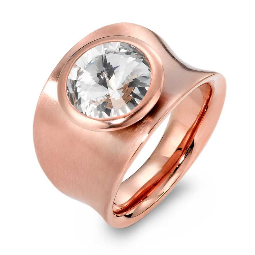Fingerring Edelstahl Zirkonia weiss rosé PVD beschichtet Ø10 mm