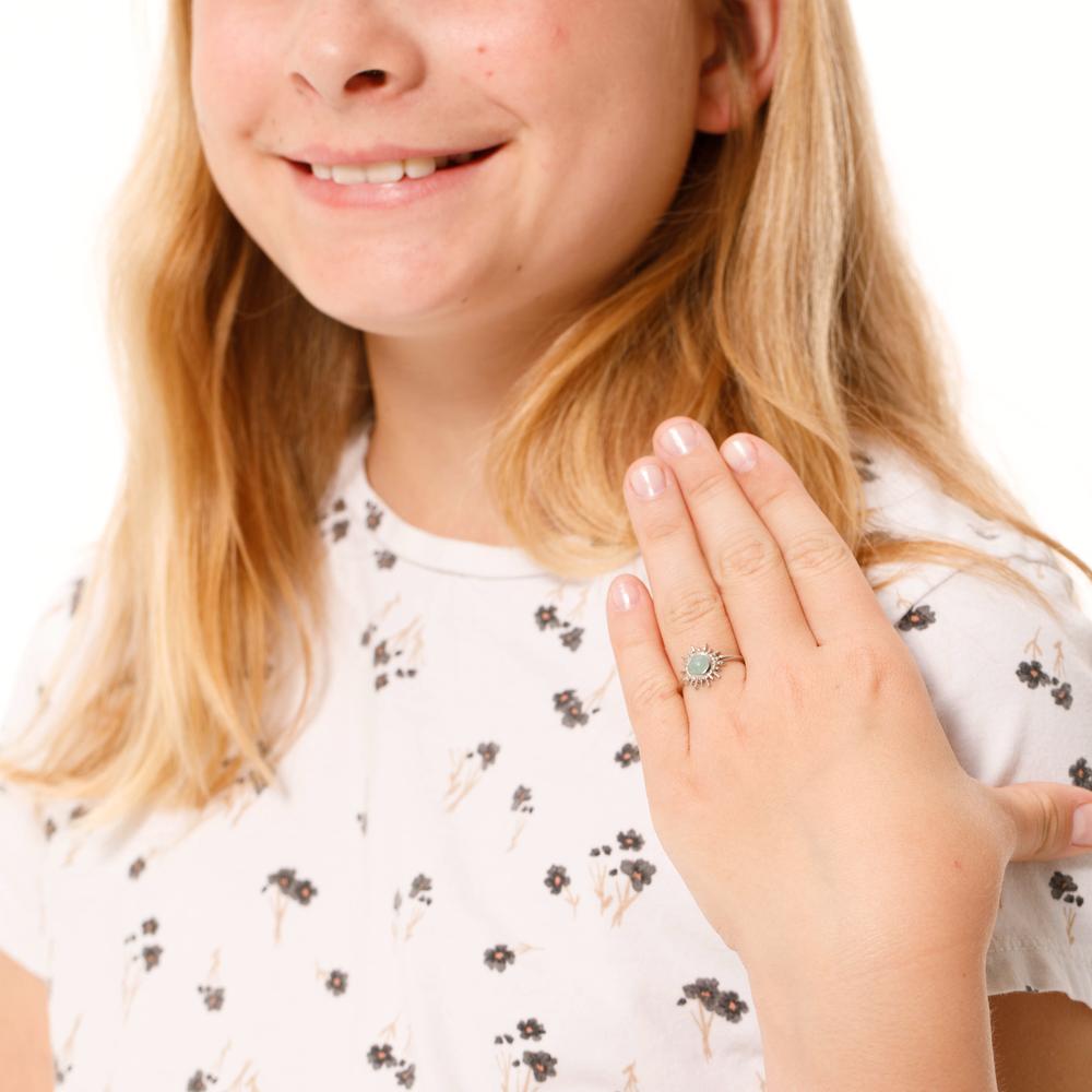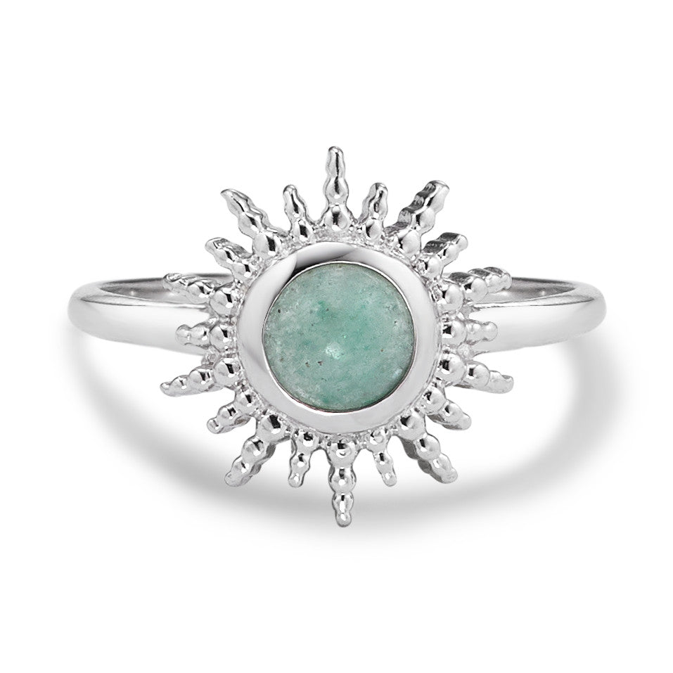 Fingerring Silber Aventurin rhodiniert Sonne Ø12 mm