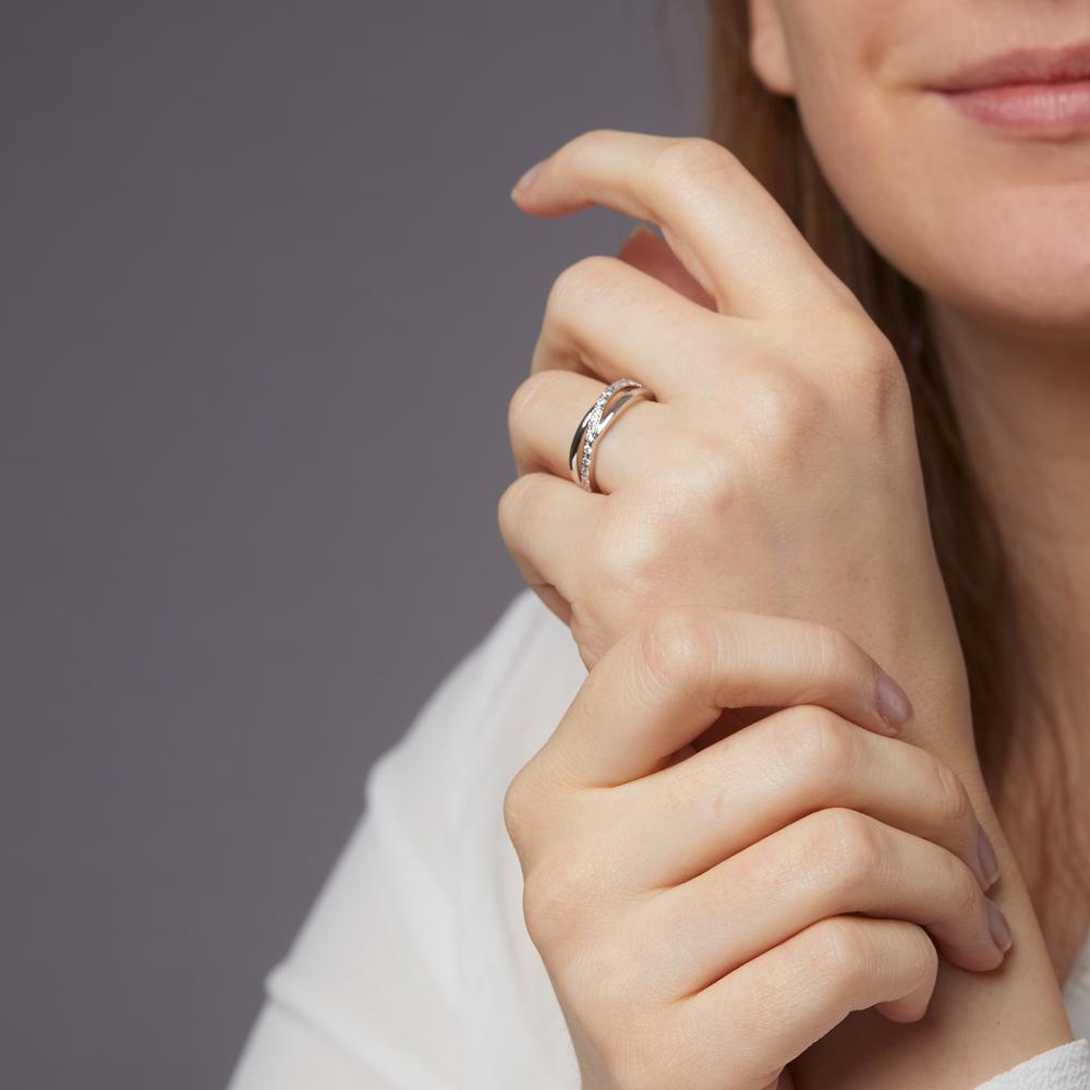 Eleganter Damen Fingerring aus hochwertigem 925er Silber mit funkelnden Zirkonia-Steinen. Das moderne, gekreuzte Design macht diesen Ring zum idealen Accessoire für Alltag und besondere Anlässe. Zeitloser Schmuck für stilbewusste Frauen.