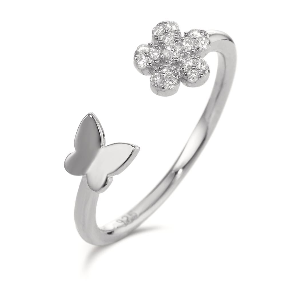 Eleganter Damenring aus hochwertigem 925er Silber, verziert mit funkelnden Zirkonia-Steinen in Blütenform und einem filigranen Schmetterling. Dieses zarte Schmuckstück verleiht jedem Outfit eine feminine und stilvolle Note. Ideal als Geschenk oder für den eigenen Look.