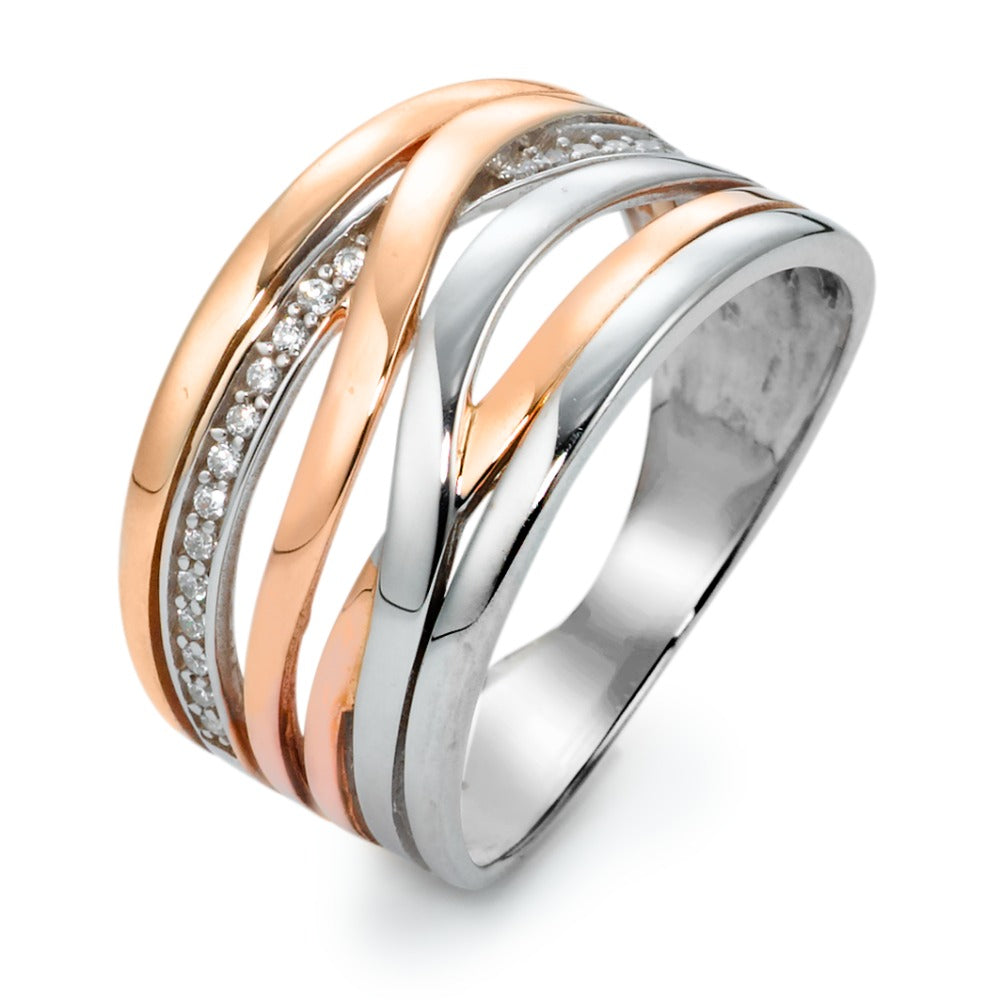 Dieser Damenring aus hochwertigem Silber besticht durch sein modernes Design in bicolor Optik. Elegante rosavergoldete und silberne Elemente verschmelzen harmonisch, während funkelnde ZirkoniaSteine für zusätzlichen Glanz sorgen. Ein stilvolles Accessoire für jeden Anlass.