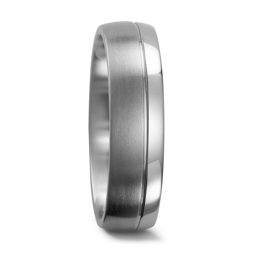 Moderner Fingerring aus hochwertigem Titan mit mattem und glänzendem Oberflächenmix. Der Ring vereint Robustheit und Stil, ideal für den täglichen Gebrauch. Dank des leichten Materials bietet er höchsten Tragekomfort und besticht durch zeitloses, elegantes Design.