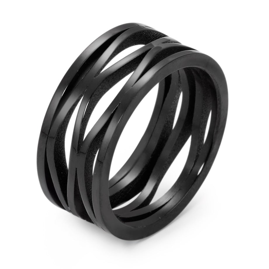 Moderner Fingerring aus leichtem, robustem Titan in elegantem Schwarz. Das offene, geschwungene Design verleiht dem Ring besondere Leichtigkeit und Stil. Perfekt für den Alltag oder als markantes Accessoire zu jedem Outfit. Hautfreundlich und langlebig.