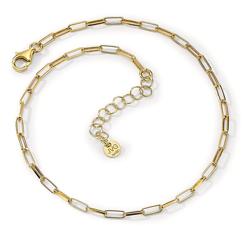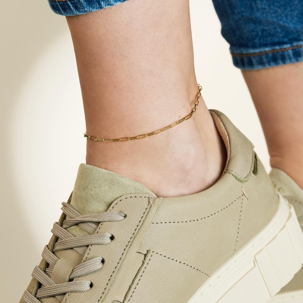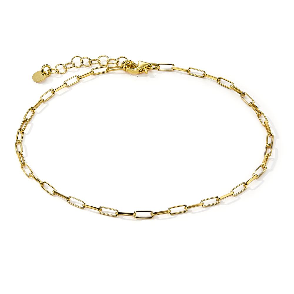 Elegantes Damen Fusskettchen aus hochwertigem, vergoldetem Silber 925. Das feine Kettchen mit länglichen Gliedern verleiht Ihrem Look einen modernen und stilvollen Akzent. Dank verstellbarer Länge perfekt anpassbar für jeden Fuss. Ein Must-Have für sommerliche Outfits!