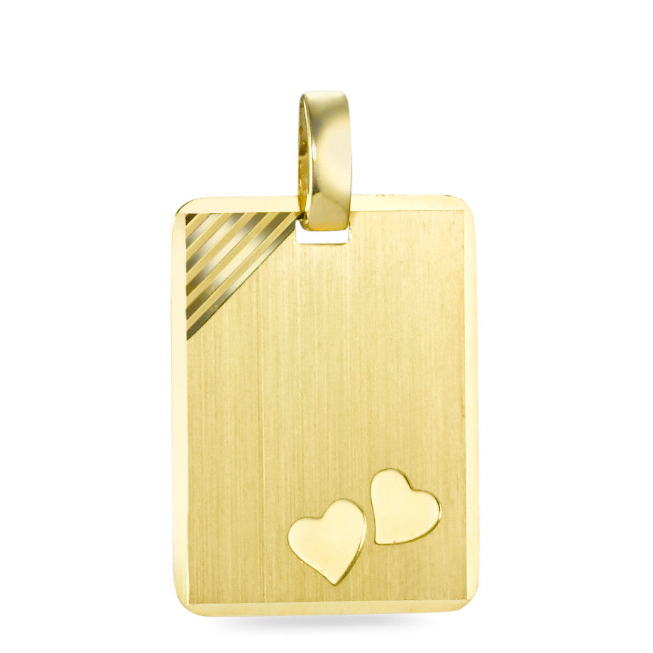 Eleganter Gravuranhänger aus 750er Gelbgold in rechteckiger Form mit sympathischem Herz-Motiv. Die matte Oberfläche wird von feinen Linienaussparungen ergänzt, die für einen stilvollen Kontrast sorgen. Perfekt, um persönliche Botschaften individuell gravieren zu lassen.