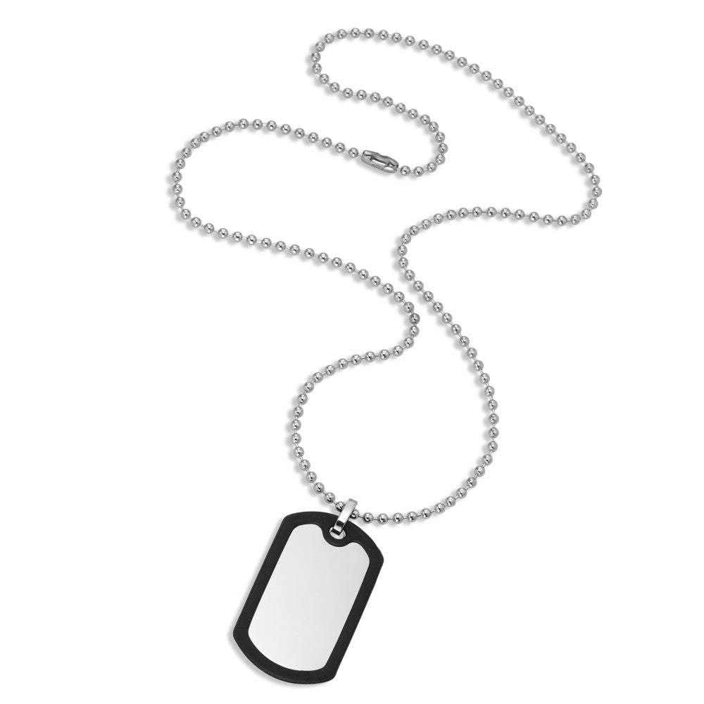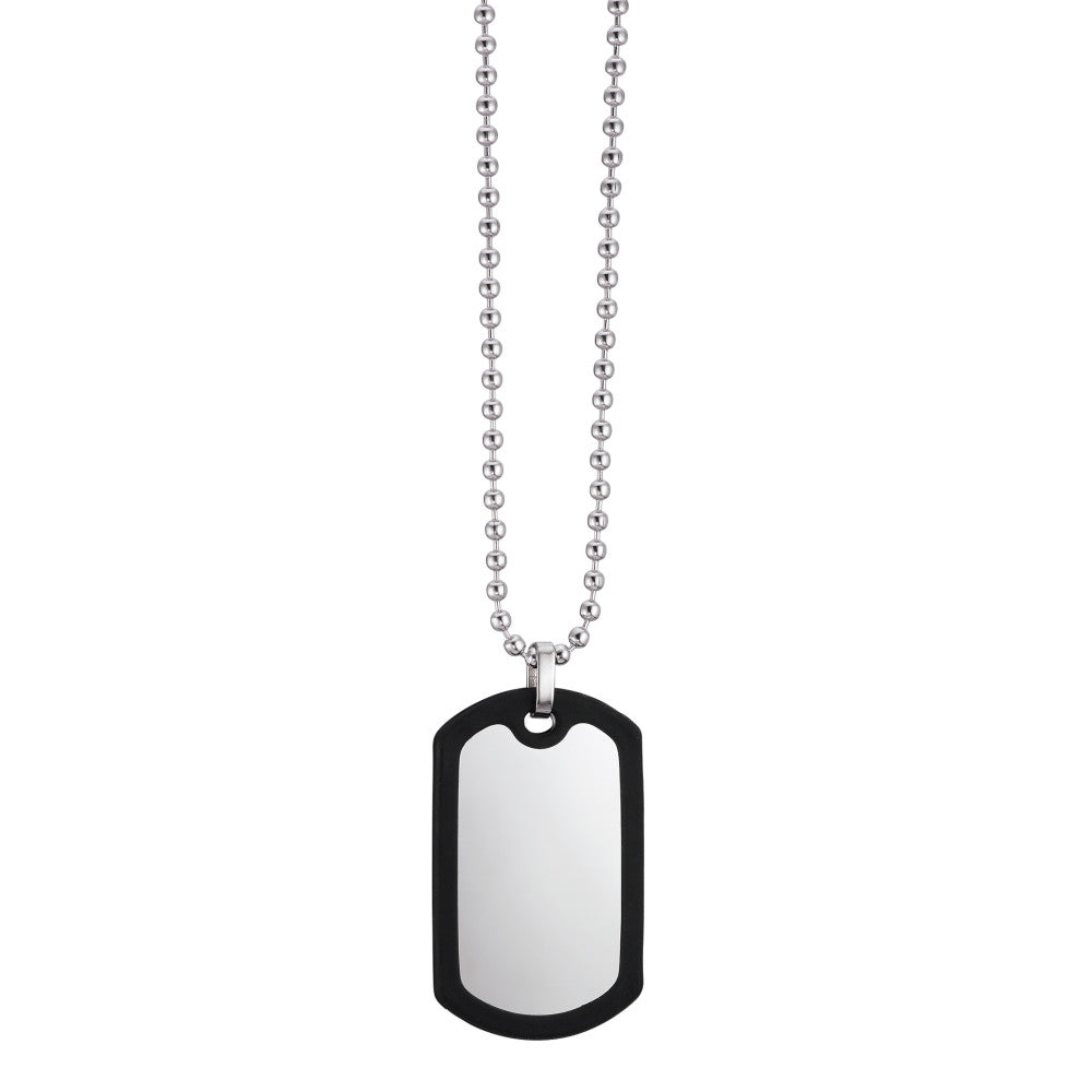 Moderner Herren Gravuranhänger aus robustem Edelstahl mit schwarzem Kautschukrand. Die praktische Kugelkette rundet das Design ab. Perfekt für individuelle Gravuren und als stilvolles, persönliches Accessoire für jeden Tag. Langlebig und elegant zugleich.
