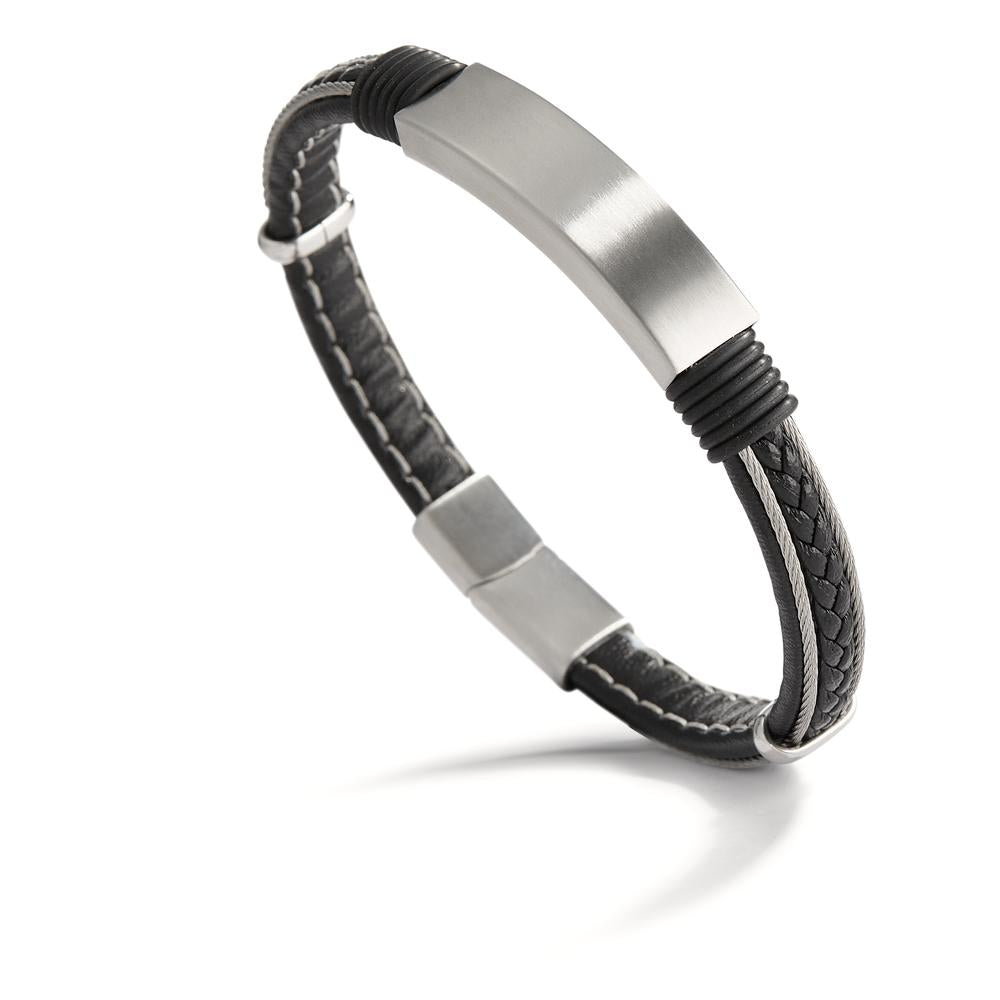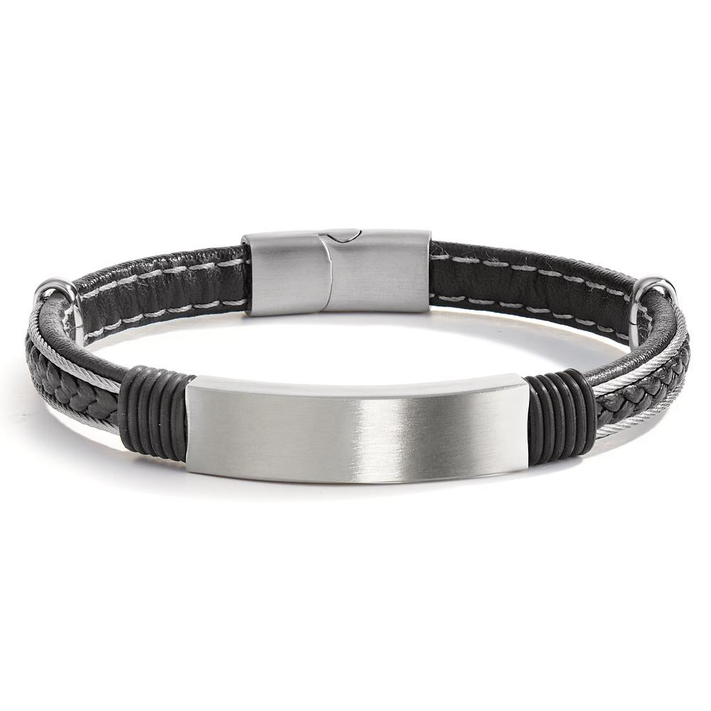 Gravurarmband Edelstahl, Kunstleder 21.5 cm