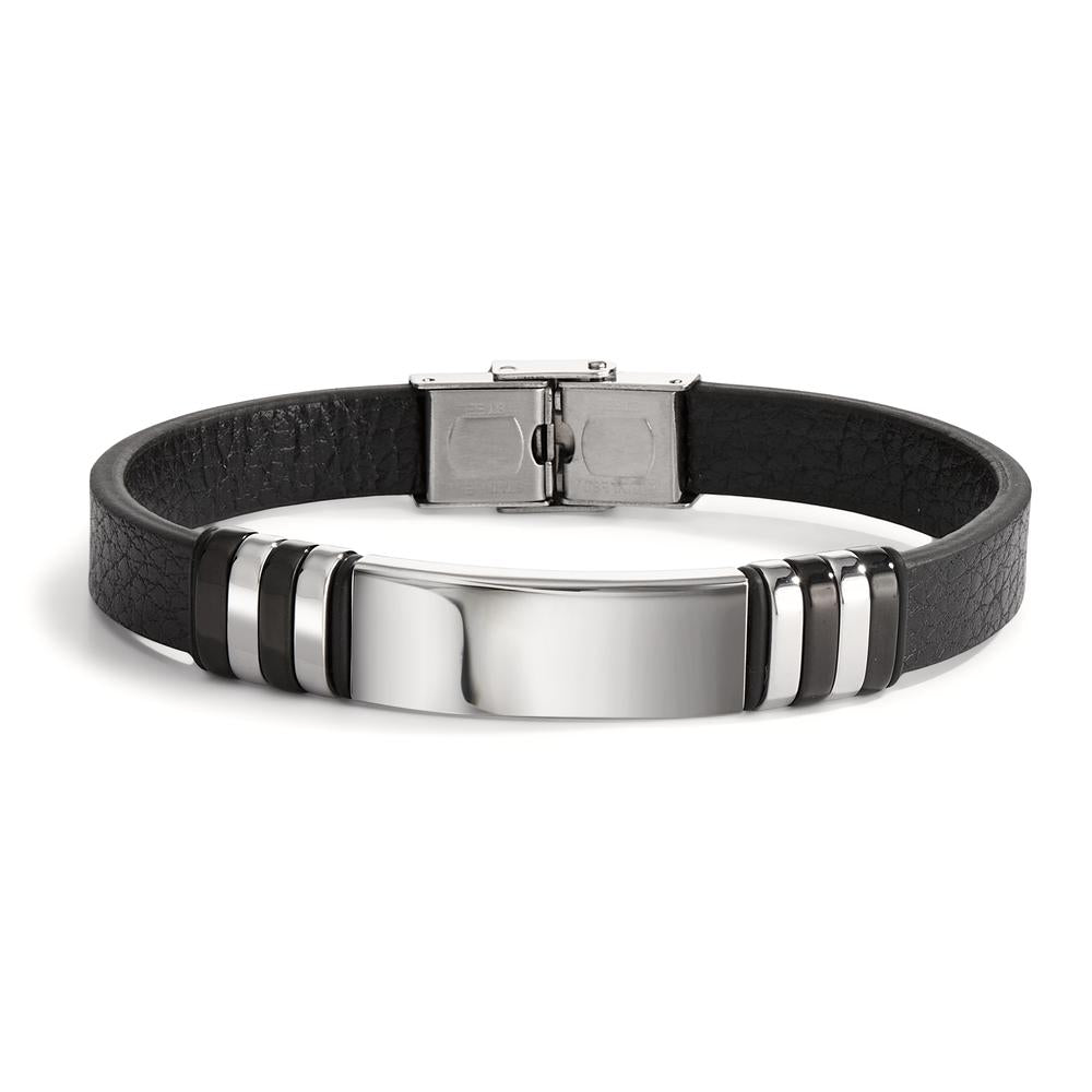 Gravurarmband Edelstahl, Kunstleder 21.5 cm