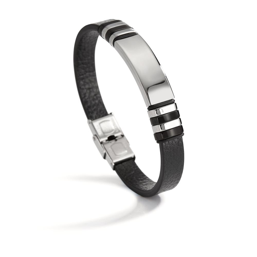 Stylisches Herrenarmband aus hochwertigem Edelstahl und schwarzem Kunstleder. Die elegante Gravurplatte lässt sich individuell personalisieren, wodurch das Armband zum einzigartigen Accessoire wird. Perfekt für jeden Anlass und ein trendiges Geschenk für Männer.