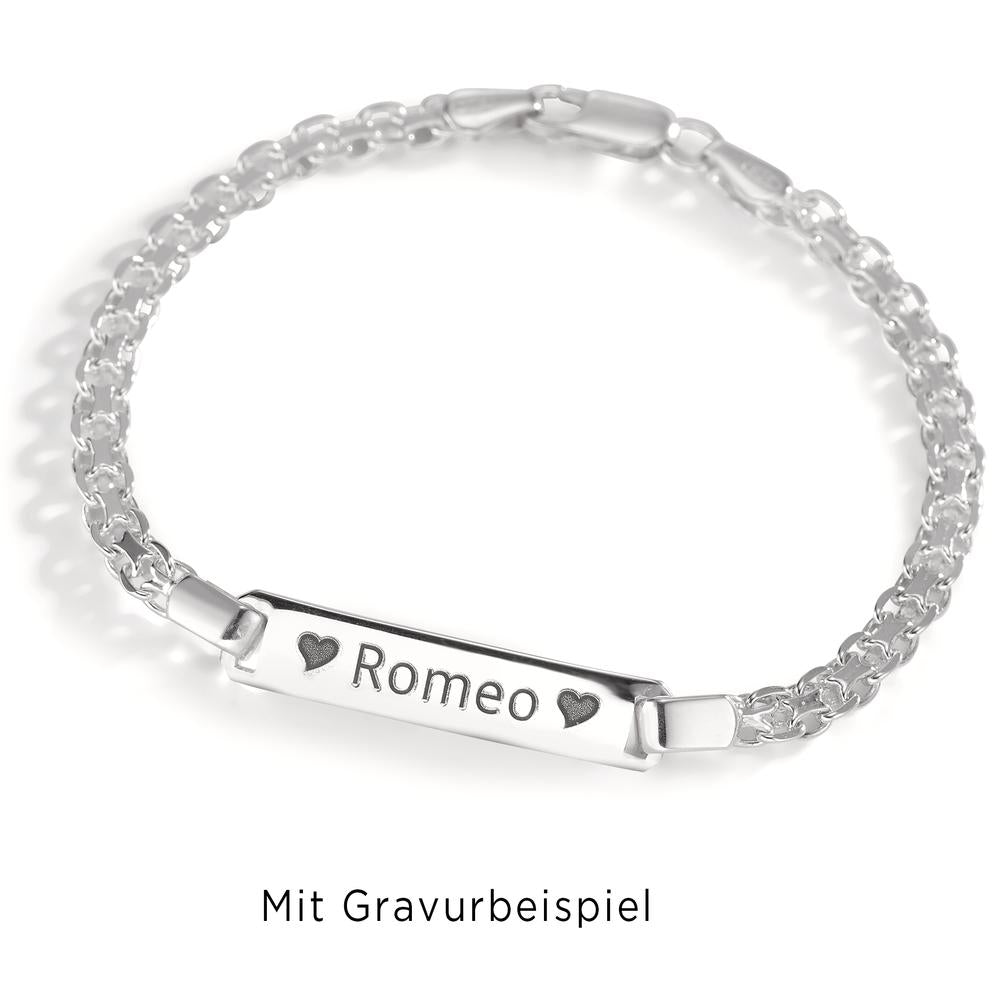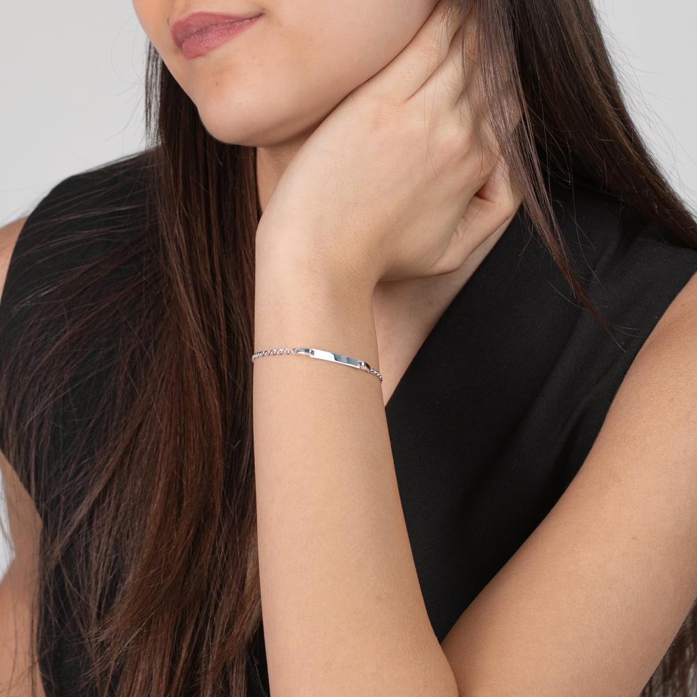 Dieses elegante Silberarmband für Mädchen überzeugt durch schlichte Schönheit und hochwertige Verarbeitung. Die Gravurplatte bietet Platz für persönliche Botschaften, Namen oder Daten. Ein besonderer Begleiter für kleine und grosse Momente im Alltag.