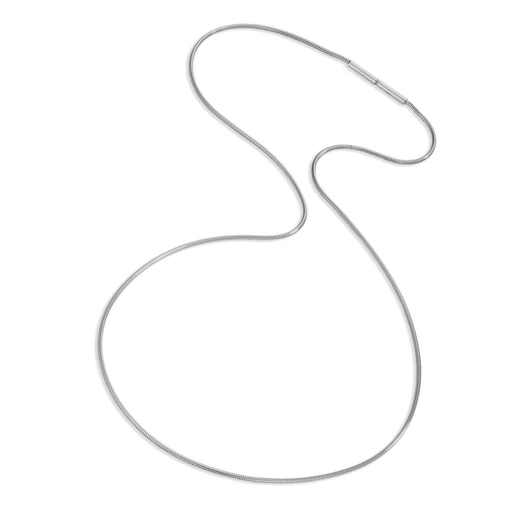 Elegante Damen-Halskette aus hochwertigem 750er Weissgold. Zeitloses Design mit feiner Schlangenkette, das sich perfekt zu jedem Outfit kombinieren lässt. Ein edles Schmuckstück für besondere Momente oder den Alltag. Hochwertige Verarbeitung für langanhaltenden Glanz.