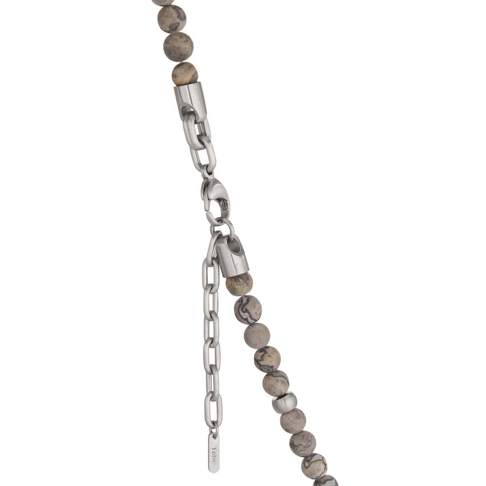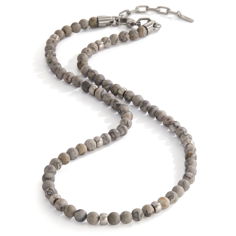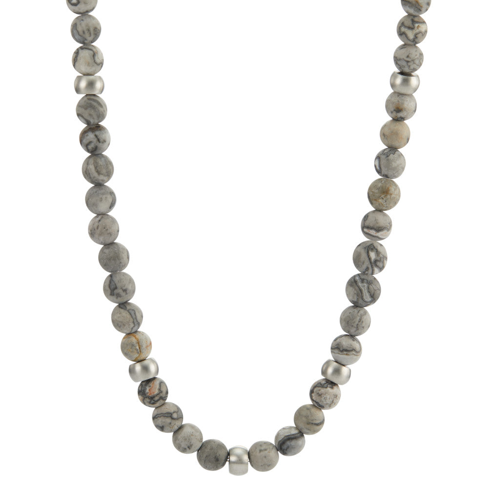 Elegantes Damen-Collier aus hochwertigen Jaspis-Perlen in sanften Grau- und Beige-Tönen, kombiniert mit matten Edelstahl-Elementen. Das zeitlose Design verleiht jedem Outfit natürliche Eleganz und ist das perfekte Accessoire für stilbewusste Frauen. Pflegeleicht und langlebig.