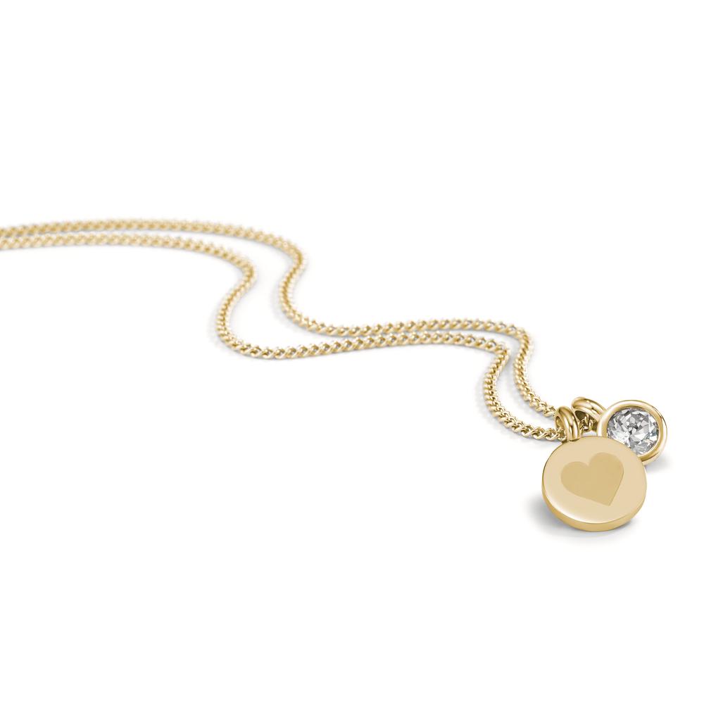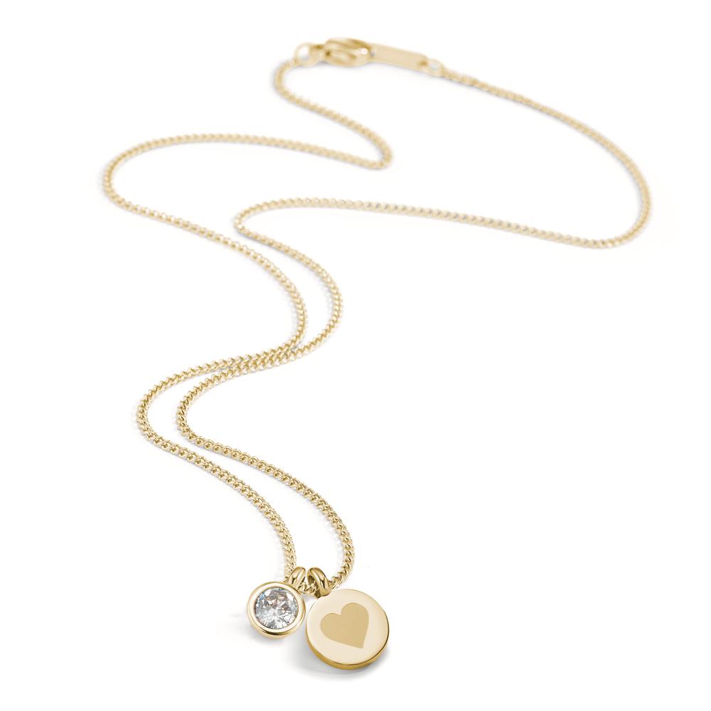 Elegantes Damen-Collier aus hochwertigem Edelstahl mit goldfarbener Beschichtung. Verziert mit einem funkelnden Zirkonia-Stein und einem zarten Herz-Anhänger. Zeitloses Design, perfekt für jeden Anlass, das Ihre Ausstrahlung dezent unterstreicht.