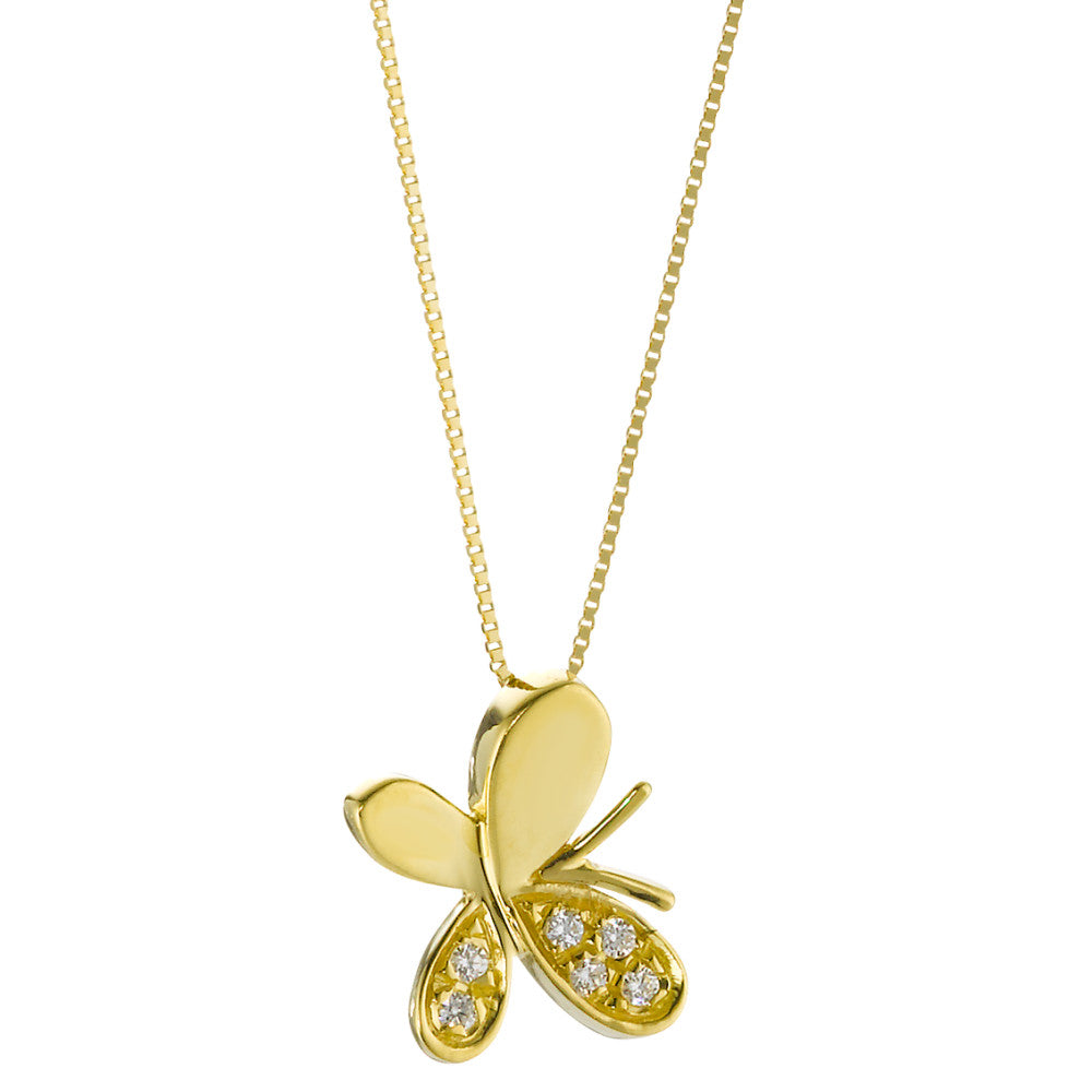 Halskette mit Anhänger 750/18 K Gelbgold Zirkonia 6 Steine Schmetterling 42 cm