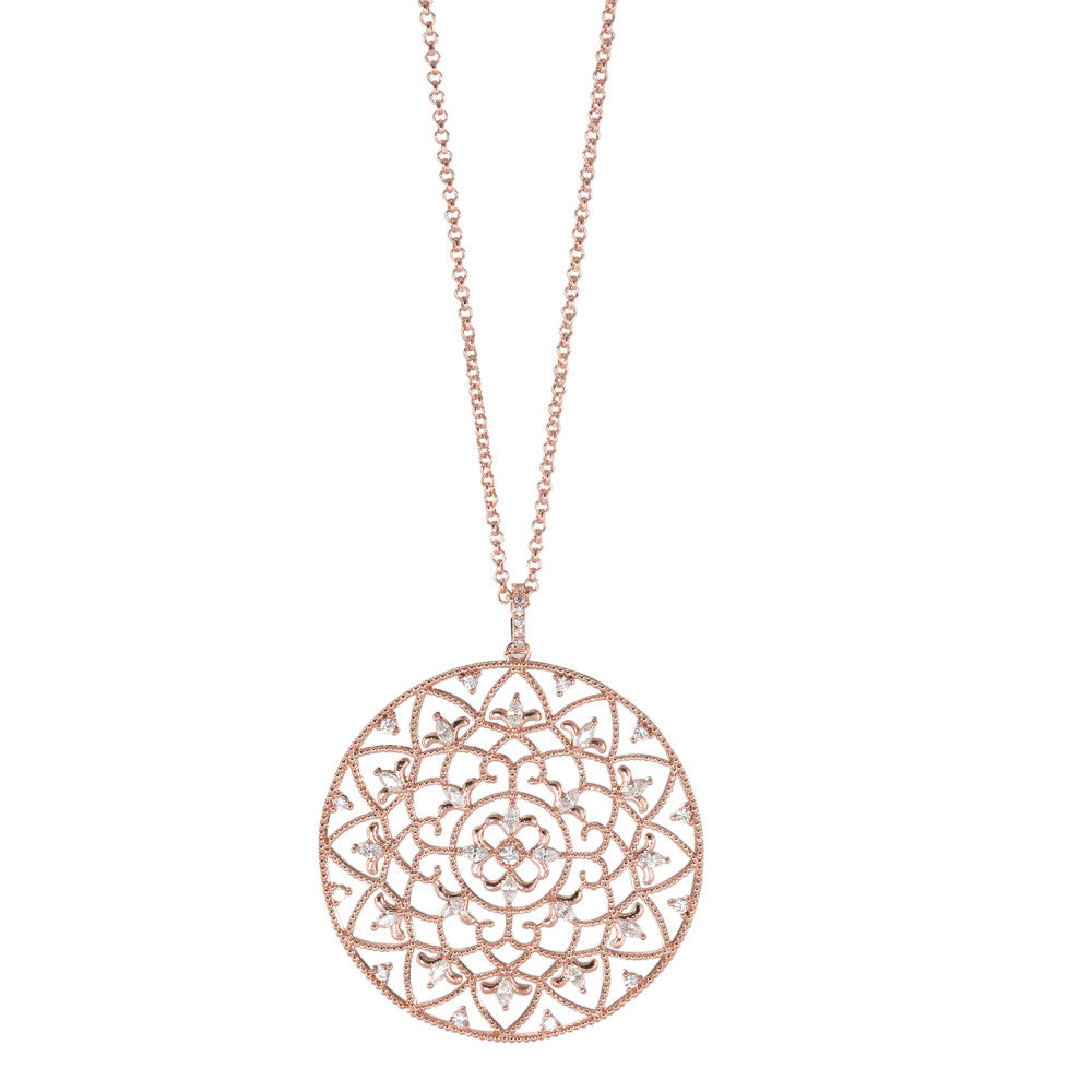 Halskette mit Anhänger Bronze Zirkonia rosé vergoldet 60-65 cm verstellbar Ø40 mm