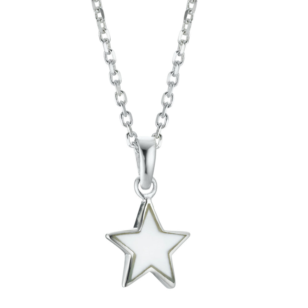 Halskette mit Anhänger Silber Perlmutt weiss Stern 36-38 cm verstellbar Ø10 mm