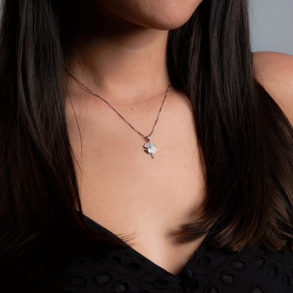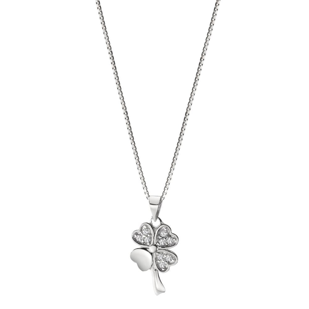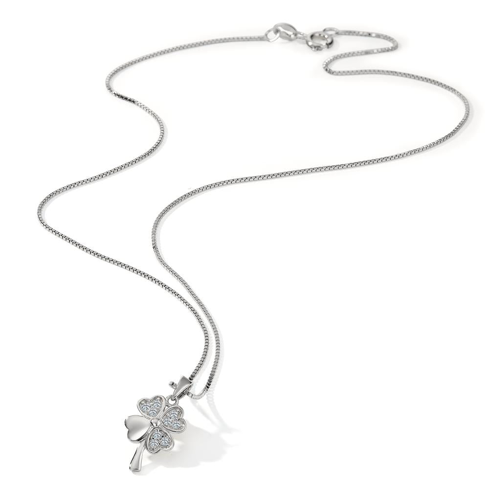 Halskette mit Anhänger Silber Zirkonia Kleeblatt 42 cm