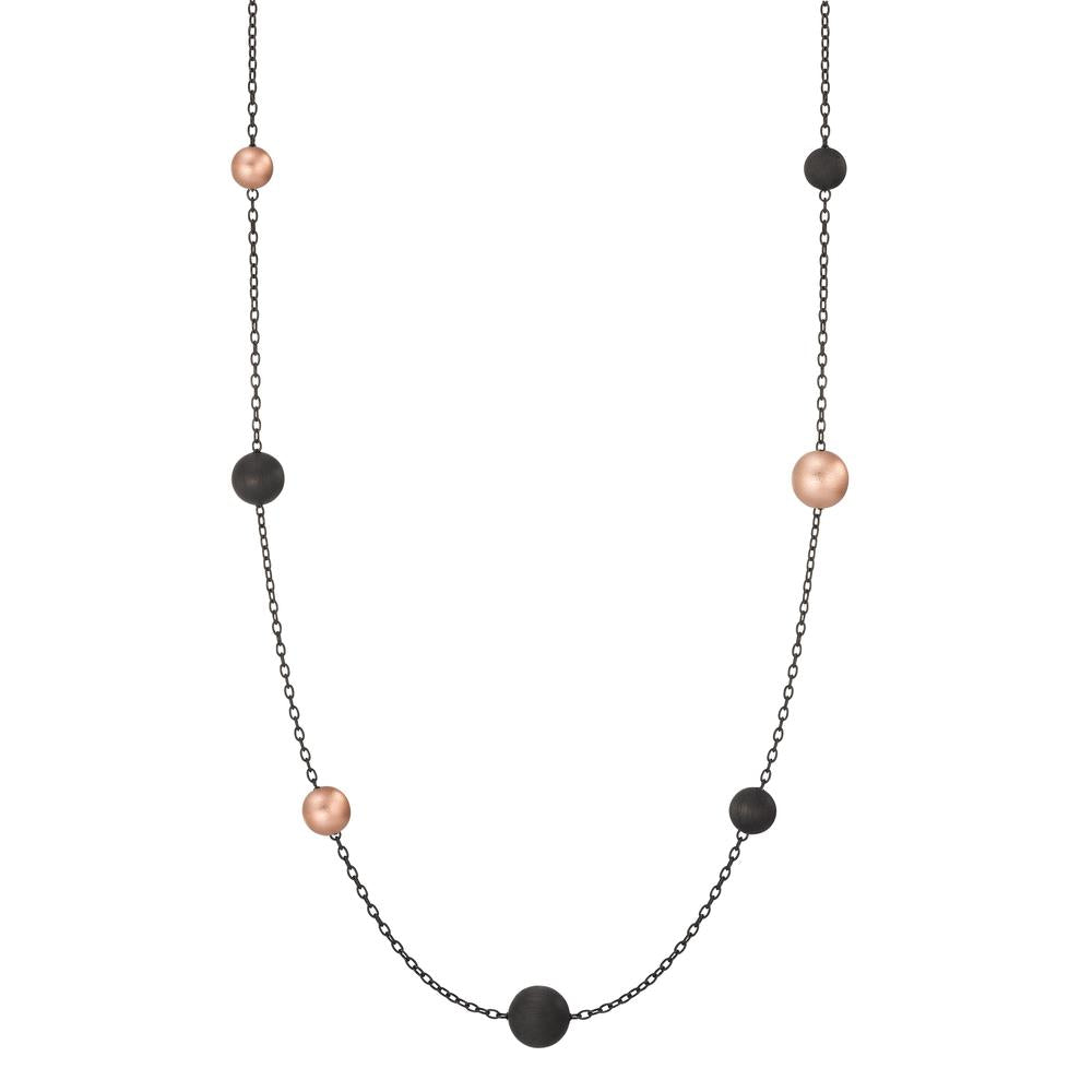 Elegantes Damen-Collier aus Edelstahl mit originellen Carbon- und Aluminium-Elementen. Die Kombination aus mattschwarzen und roséfarbenen Kugeln auf feiner Kette macht das Schmuckstück zu einem modernen Blickfang. Perfekt für stilbewusste Frauen, die formschöne Accessoires lieben.