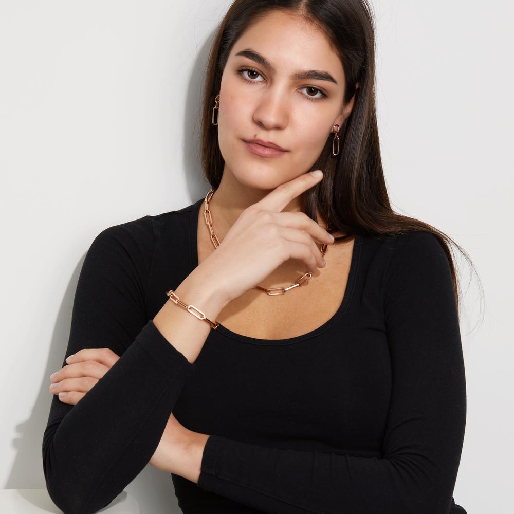 Elegantes Damen Collier aus hochwertigem Edelstahl in modischer Roségold-Optik. Die rechteckigen Glieder verleihen dem Schmuckstück einen modernen und zeitlosen Look. Perfekt für Alltag und besondere Anlässe, hypoallergen und langlebig. Ein Must-Have für stilbewusste Frauen.